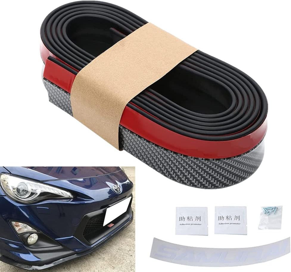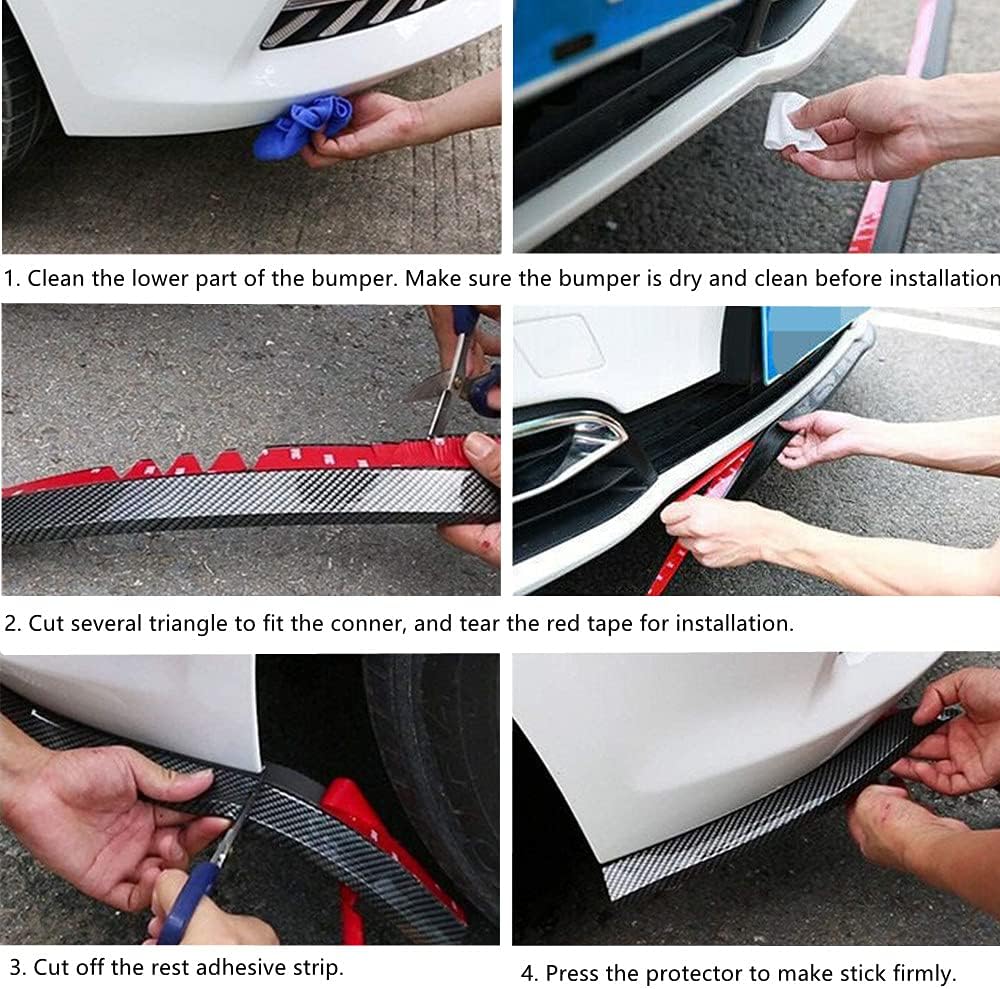 • ♕ 4. Widely Application: Easy to bend, cut and fold, can be sticked on front or rear bumper, body kit, side skirt, tail fins and so on. Length is adjustable to your cars; anti-scratch and decorative, fully withstand impact and collision.