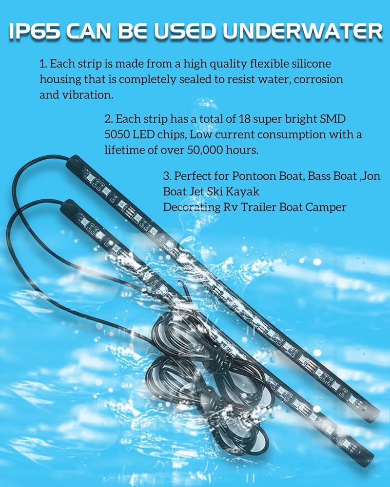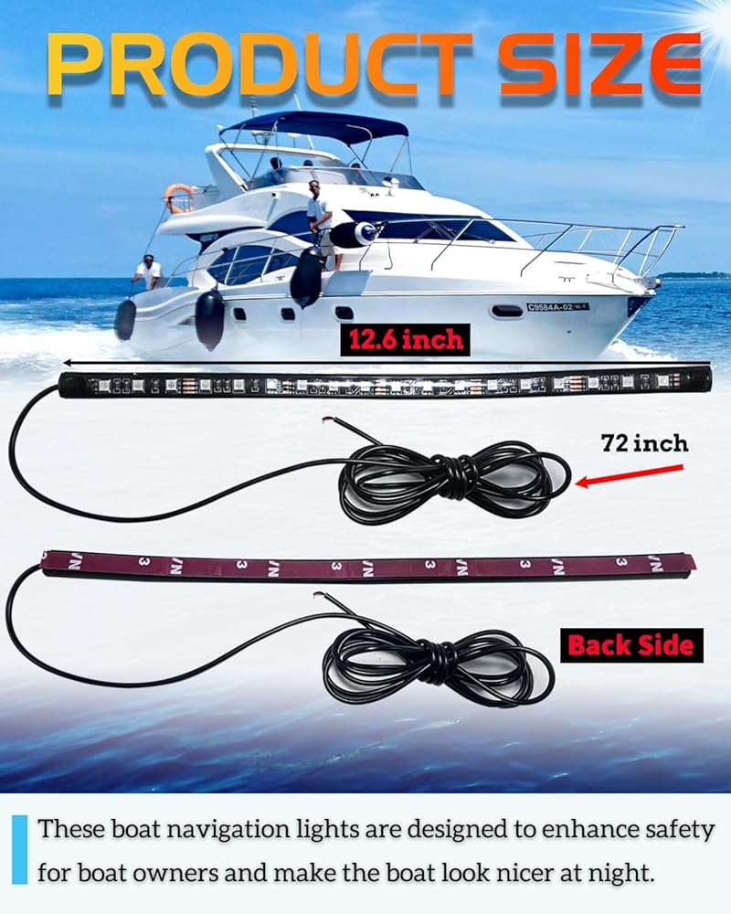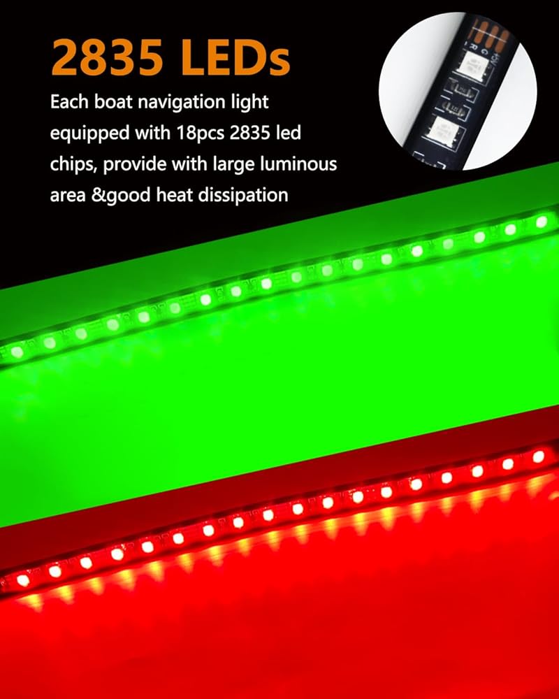 【إضاءة ملاحة أكثر سطوعًا】يحتوي كل شريط على ما مجموعه 18 شريحة SMD 5050 LED فائقة السطوع، كل شريحة LED تحتوي على 3 بواعث، متينة ومقاومة للطقس مع استهلاك تيار منخفض وعمر أكثر من 50000 ساعة.