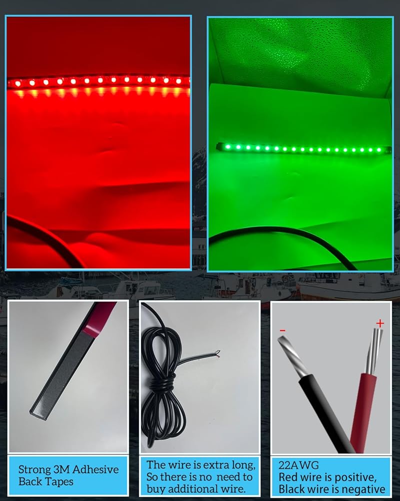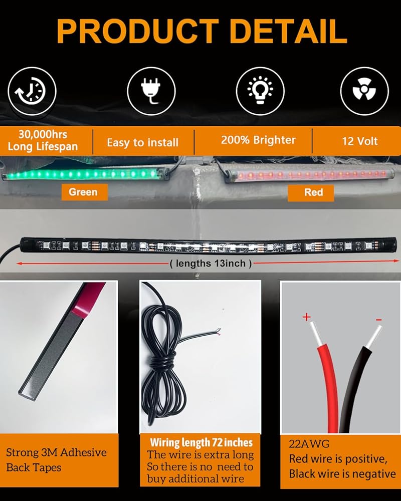 【المواصفات】مصنوعة من مواد عالية الجودة، طول الشريط: 12.6 بوصة (32 سم)، العرض: 0.51 بوصة (1.3 سم)، اللون: أحمر وأخضر، الجهد الكهربي: 12 فولت-تيار مستمر، مقياس السلك: 22AWG، حوالي 72 بوصة (182 سم) سلك طويل، لا تحتاج إلى شراء سلك إضافي، (إذا واجهت أي مشكلة، فلا تتردد في الاتصال بنا).
