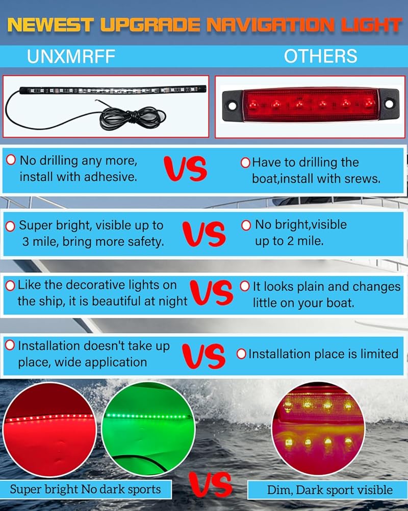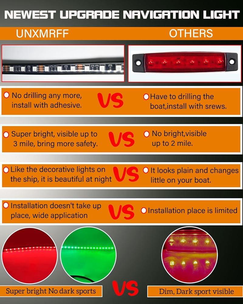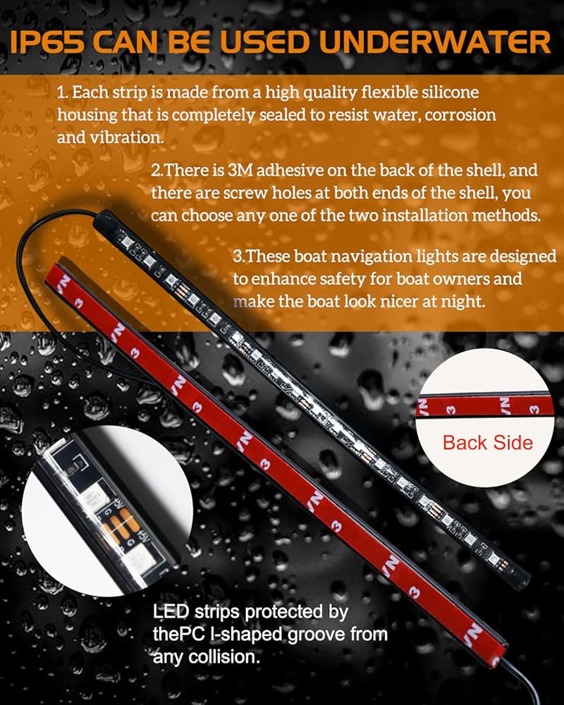 【سهلة التركيب 】تحتوي مصابيح الملاحة البحرية LED الجديدة على شريط 3M ذاتي اللصق على الظهر، ما عليك سوى تنظيف موقع التثبيت، ثم قشرها ولصقها، لا مزيد من الحفر أو البراغي، لا داعي للقلق من تلف قاربك.
