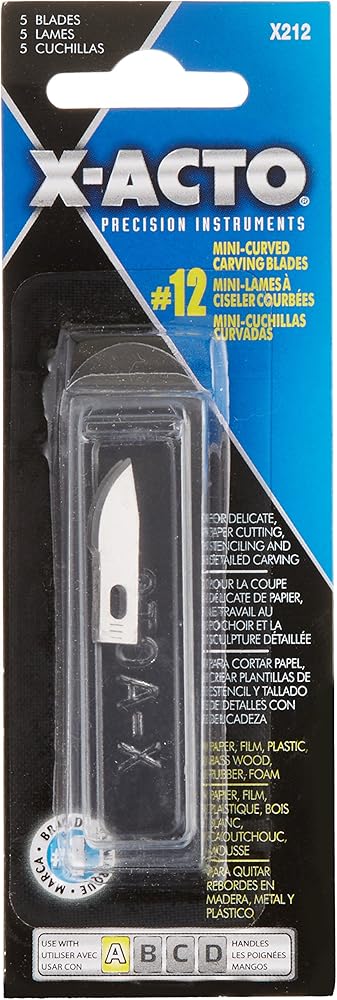 The X-ACTO #12 Mini Curved Carving Blade is a delicate cutting tool designed for intricate paper trimming, stenciling and other detail work requiring a careful eye and a fine blade. This blade is the ideal tool for a craft artist or hobbyist looking to make minute, detail carvings with ultimate precision. The #12 Mini Curved Carving Blade by X-ACTO is designed for delicate materials, including: Tissue paper Film Photo edges Plastic Rubber Foam And more X-ACTO blades are designed to allow you to make the careful and detailed cuts you need time and time again. Our blades are created with care and exceptional craftsmanship, producing a cutting edge that stays sharp over a longer period of time. An X-ACTO quality blade is always ready when you need more than 65 years, Elmer's Products, Inc. has been providing creative adhesive solutions that support success and turn ideas into reality.