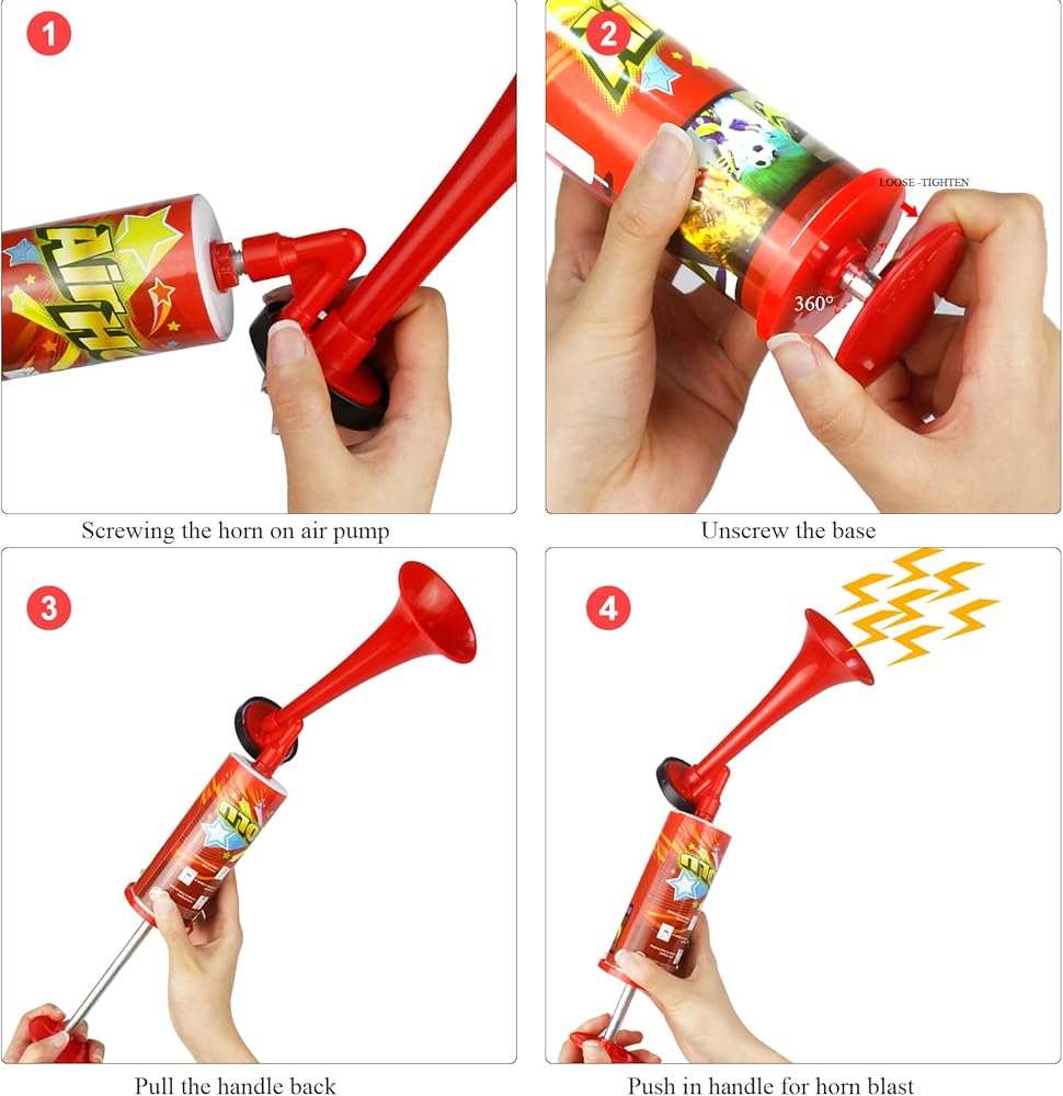 • 【لا ينفد أبدًا】بدلاً من البوق العادي المشحون بالغاز، فهو بوق مضخة يمكن استخدامه مرارًا وتكرارًا، بصوت عالٍ جدًا بدون علبة غاز أو كهرباء، لا داعي للقلق بشأن تسرب الغاز أو انفجار الغاز تحت درجة حرارة عالية، متين و آمن.
