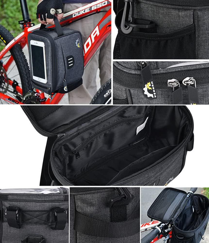 تتميز الحقيبة الأمامية للدراجة ذات السعة الكبيرة بسعة كبيرة تصل إلى 5 لتر، وهي مثالية لحمل جميع العناصر اللازمة للركوب اليومي، مثل الهاتف الذكي وزجاجة المياه والمحفظة والمفاتيح والنظارات وأدوات إصلاح الدراجة وسماعات الأذن والولاعات وغيرها من ملحقات الدراجة.