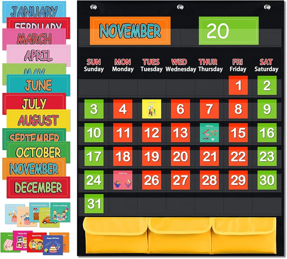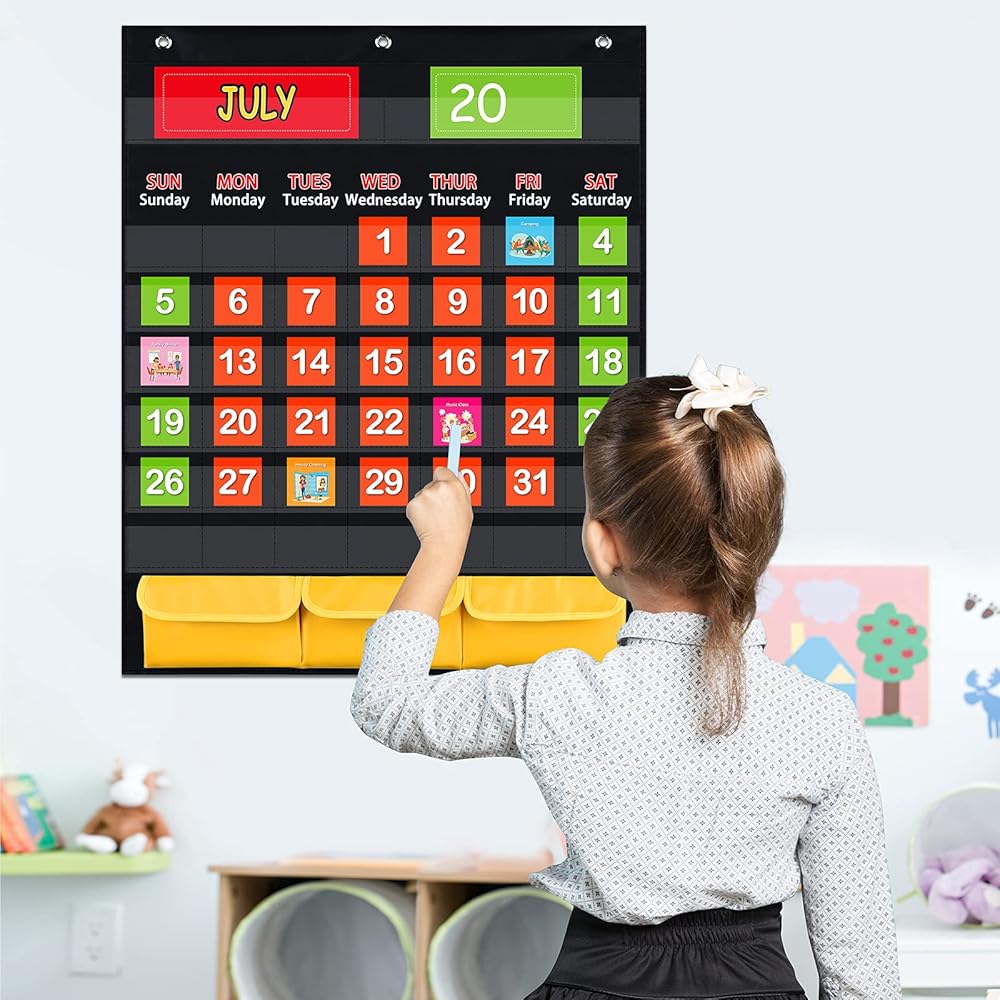 • Children's Gift : Monthly calendar pocket chart specially designed for children. Cute cards and patterns, very popular with children.Very suitable as children's birthday and holiday gifts!