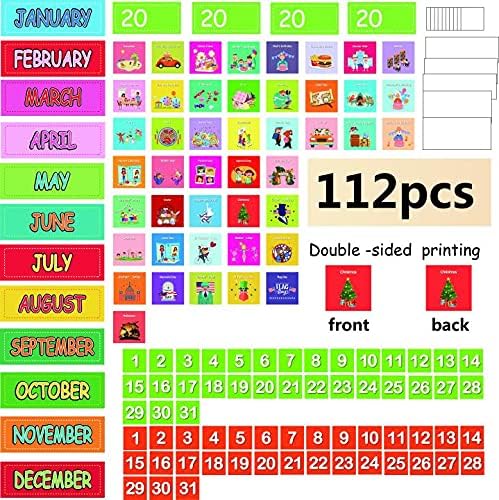 • Special Design: Monthly calendar pocket chart plus 112 flash cards ,bottom features 3 pockets for easy storage .There are a total of 42 pockets, which can hold all months situation of the year. Avoid situations where some numbers are not in pockets.All cards are printed on both sides, and the two-sided printing of digital cards in two colors can be used to distinguish between weekends and working days.