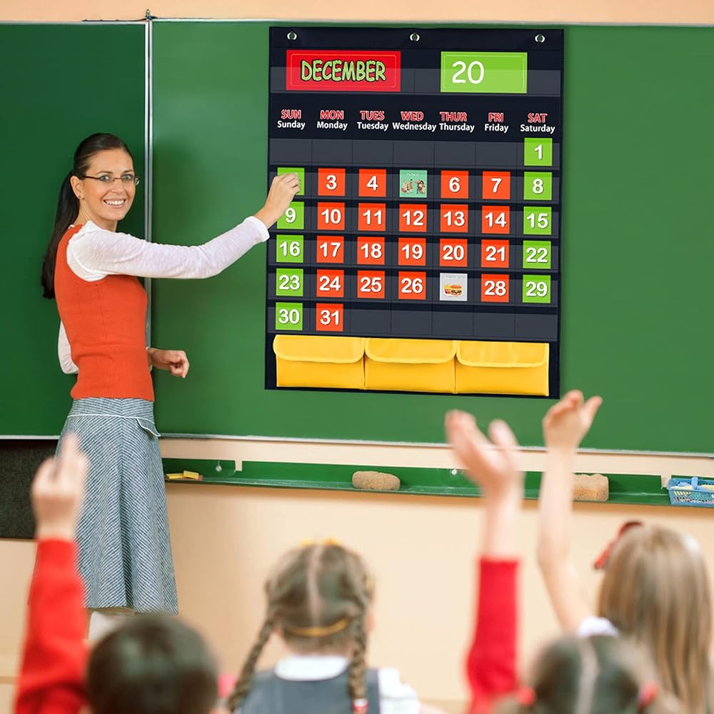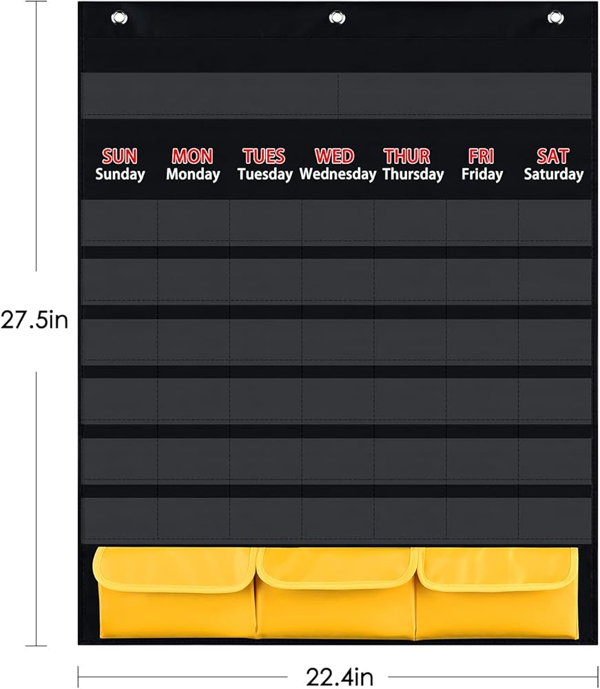 1 X Black Calendar Pocket Chart(27.5” X 22.4”)