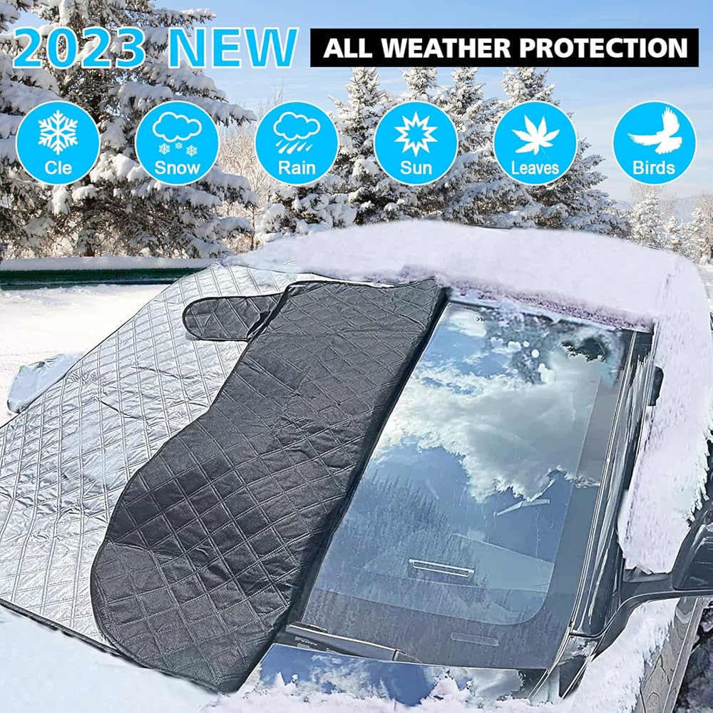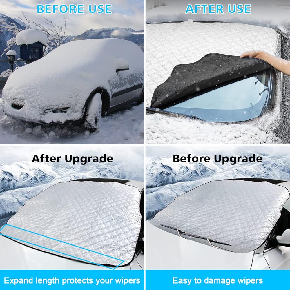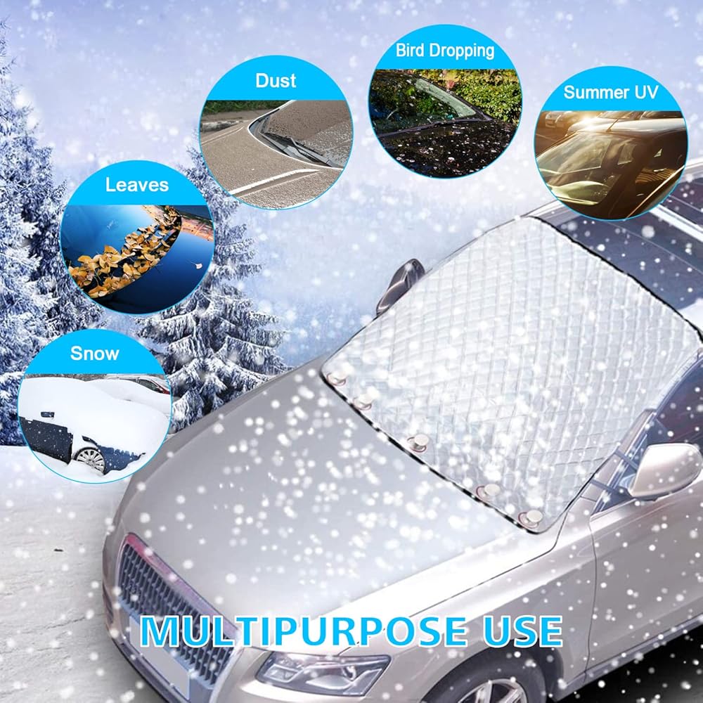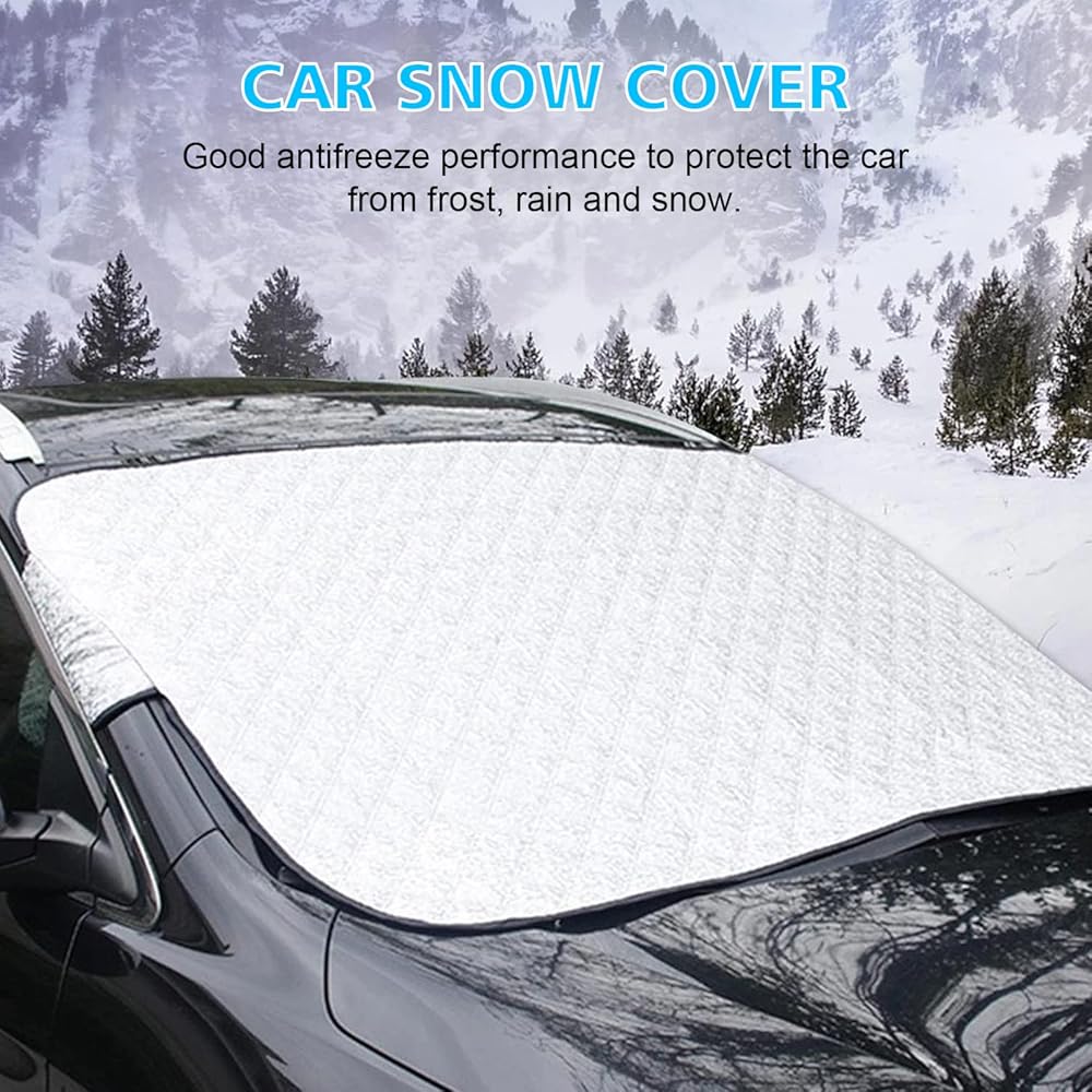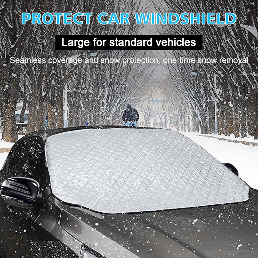 • With a standard size of 147×120cm (57.87” L * 47” W), our Windshield Snow Cover is suitable for most vehicles and standard SUVs. It covers the entire windshield and wiper blade, providing complete protection.Perfect for car owners who want a high-quality and durable car cover that is suitable for all seasons.