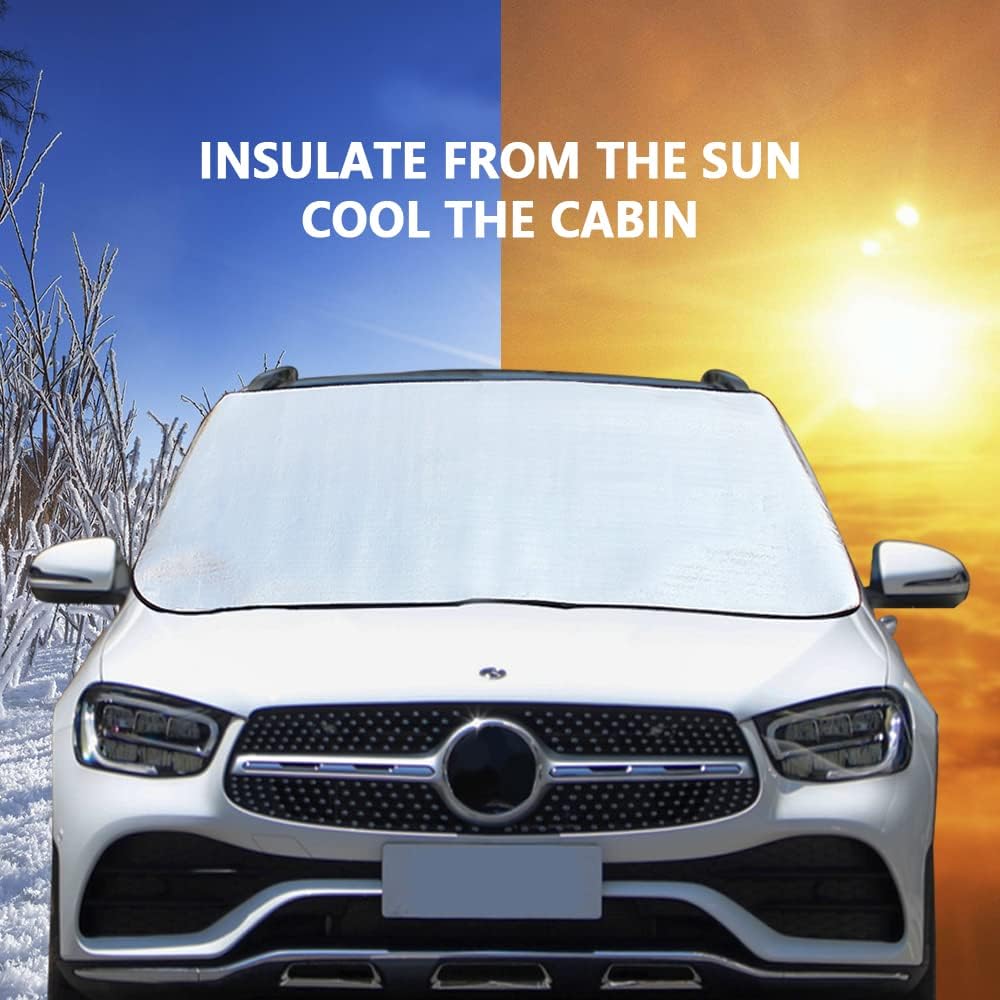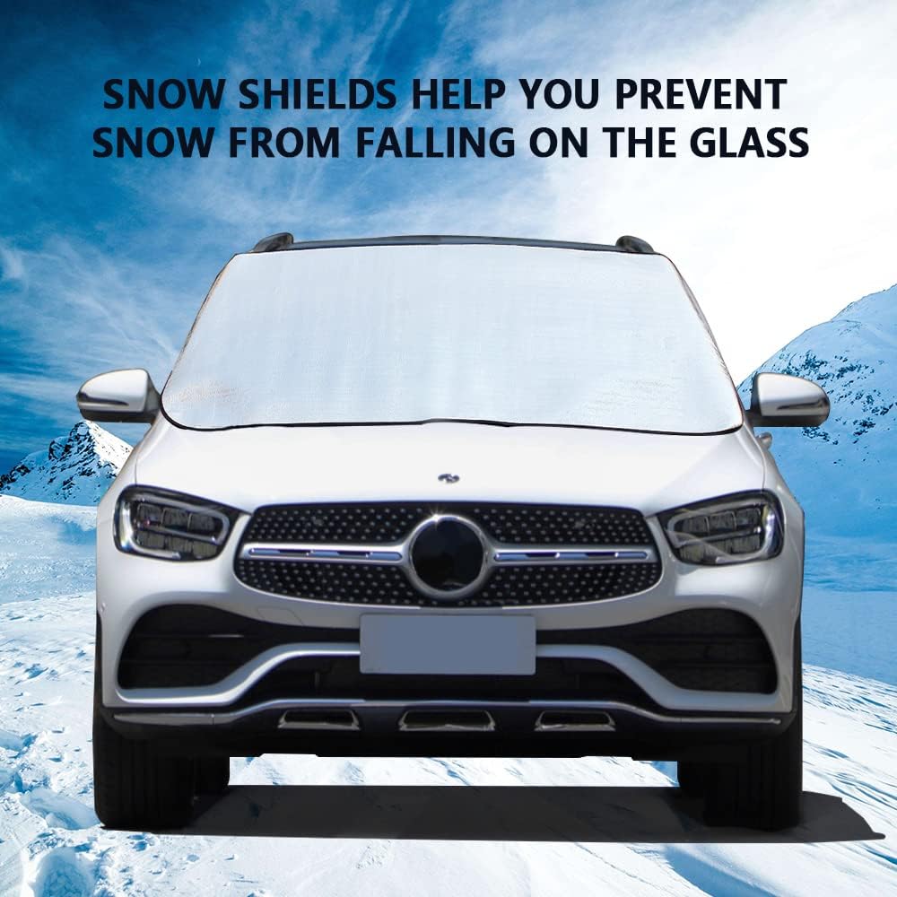 • <ul> <li>Windshield Cover: windshield snow cover will offer your cars effective protection. This car snow cover protects your car from snow and ice, saving you time brushing snow and preventing windshield scratches. Plus, it protects your car from rain, slush, hail, storms and other winter debris. The perfect Christmas gift for the winter outdoors!</li> </ul>
