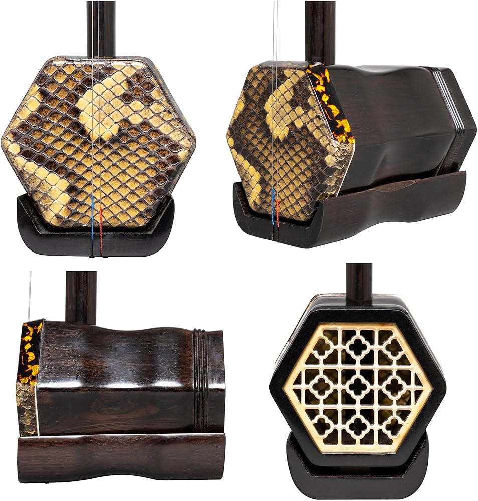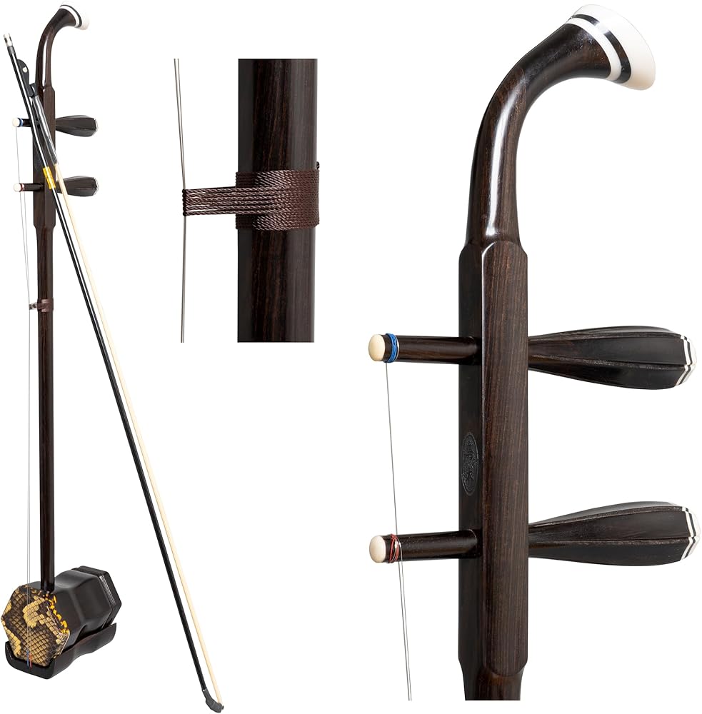 🎻 HANDCRAFTED- Our erhu makers use the highest quality ebony tonewood, characteristic of its dense hardness that is often applied in the 16th century for luxury and decorative uses in musical instruments as well as refined molding framing, detailed pictorial panels, fine cabinets and furnishing.