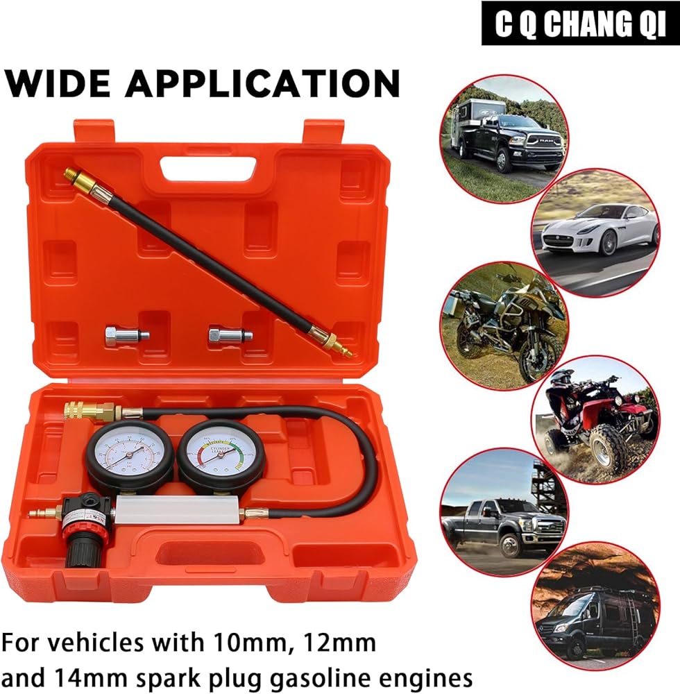 • [يناسب سيارتك] - مناسب للاستخدام على أي محركات بنزين رباعية الأشواط مع شمعات إشعال 10 أو 12 أو 14 مم. يقوم جهاز الاختبار بفحص كمية التسرب في أسطوانة المحرك ويساعد في تحديد المصدر. مثالية لاختبار الشاحنات والسيارات ذات الطراز المتأخر حيث يكون التخليص في حده الأدنى.