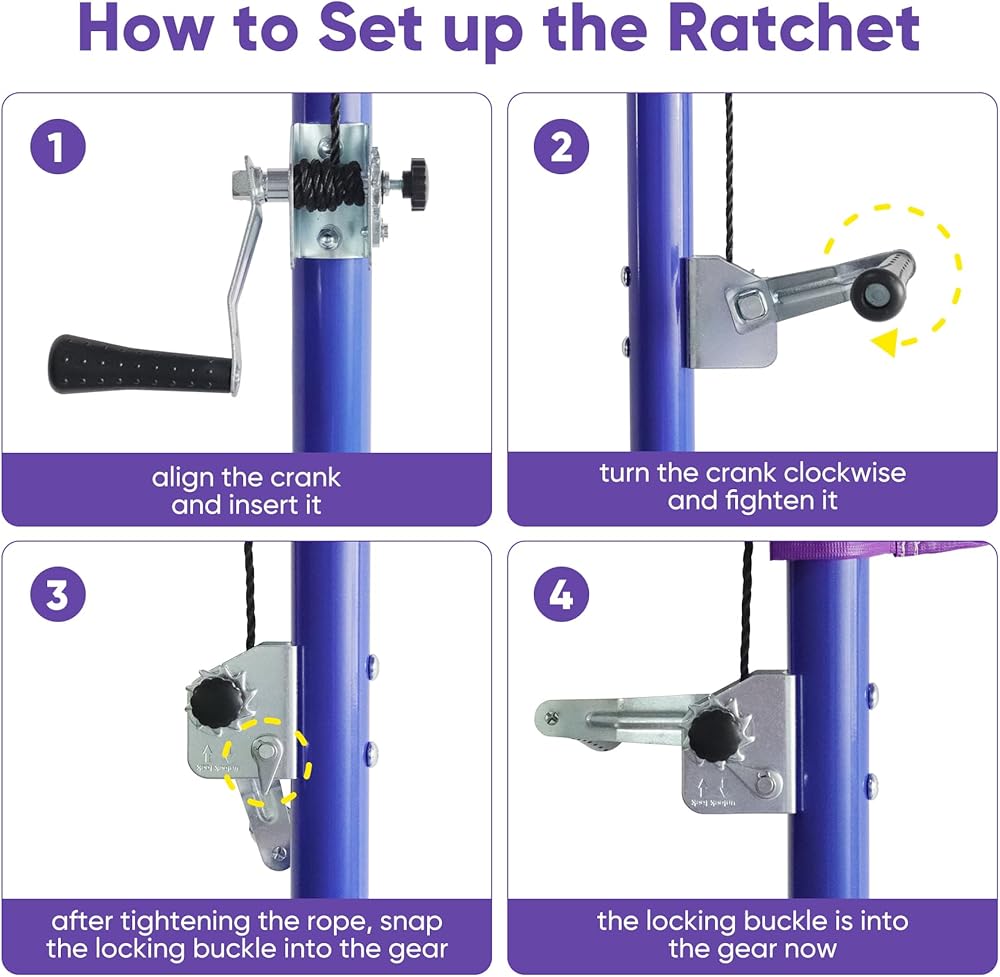 Anti-sag System Design (Ratchet): The ratchet is designed to offer more precise net adjustments, making it easy and painless to keep the net taut and minimize the sagging in the middle. If you don't know how to install the ratchet, please check out the electric instruction, video and the picture on the product detail page. There are detailed explanation.
