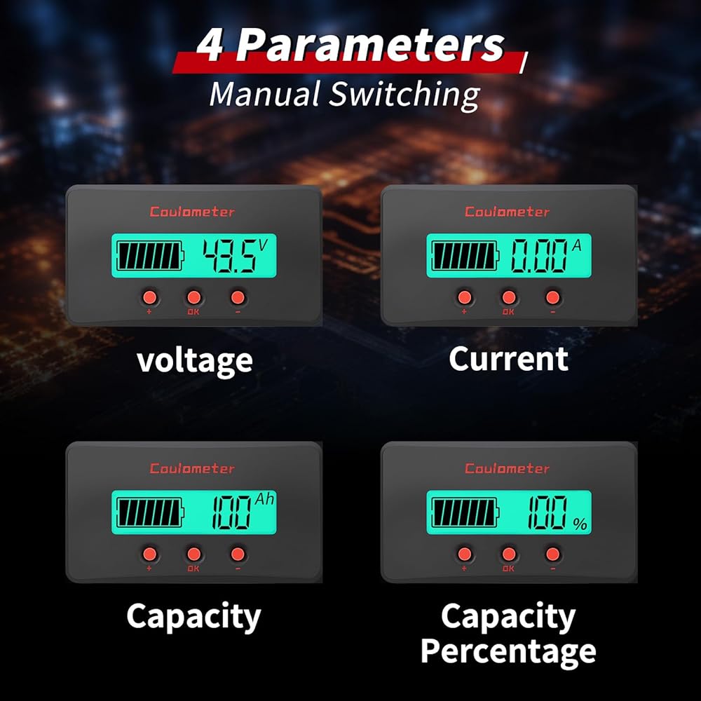 【Wide Angle Screen】DROK Coulombmeter is designed with wide viewing angle high contrast curved LCD screen, can be easily read anywhere. Further more, it can also be read in dark or low light conditions thanks for the backlight design.