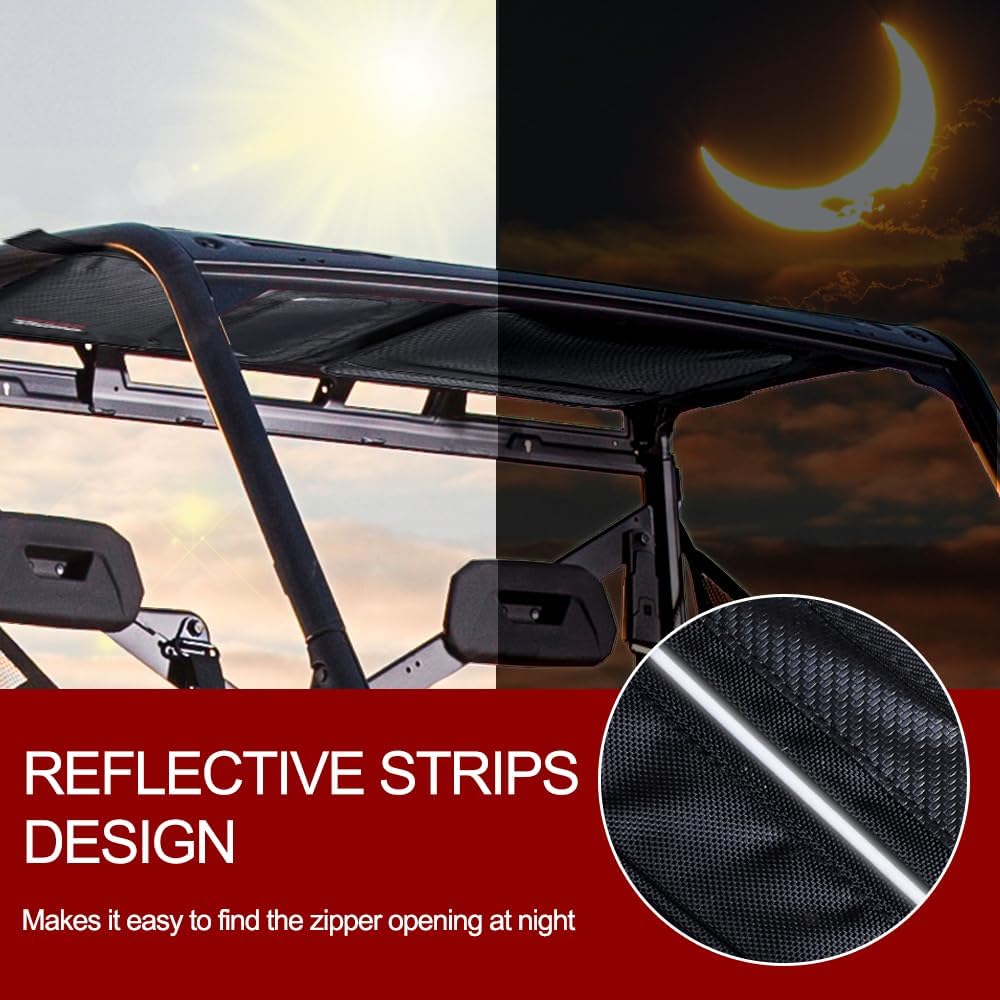 حقيبة السقف العلوي UTV 1680D حقيبة تخزين مقاومة للماء متينة ذات سعة كبيرة ومجهزة بإضاءة قابلة للإزالة متوافقة مع 2014-23 Polaris RZR XP 1000/S 1000 Turbo 900 S Can Am Commander MAX