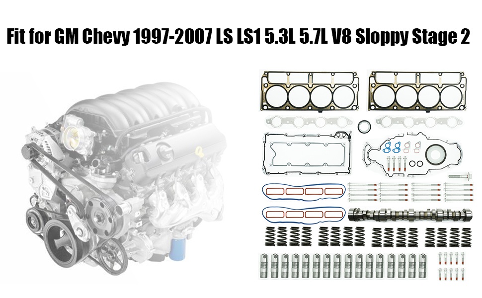 E1840P ميكانيكا قذرة المرحلة 2 عمود الحدبات كام LS7 رافع مناسب لـ 1997-2007 GM Chevy LS L92 L99 5.3L 5.7L V8 مجموعة مسامير جوانات الرأس القذرة لمحرك 1997-2007 LS LS1 5.3L 5.7L