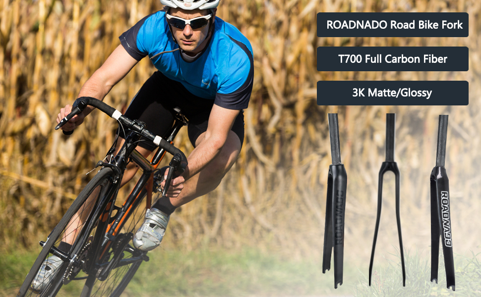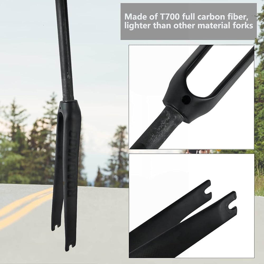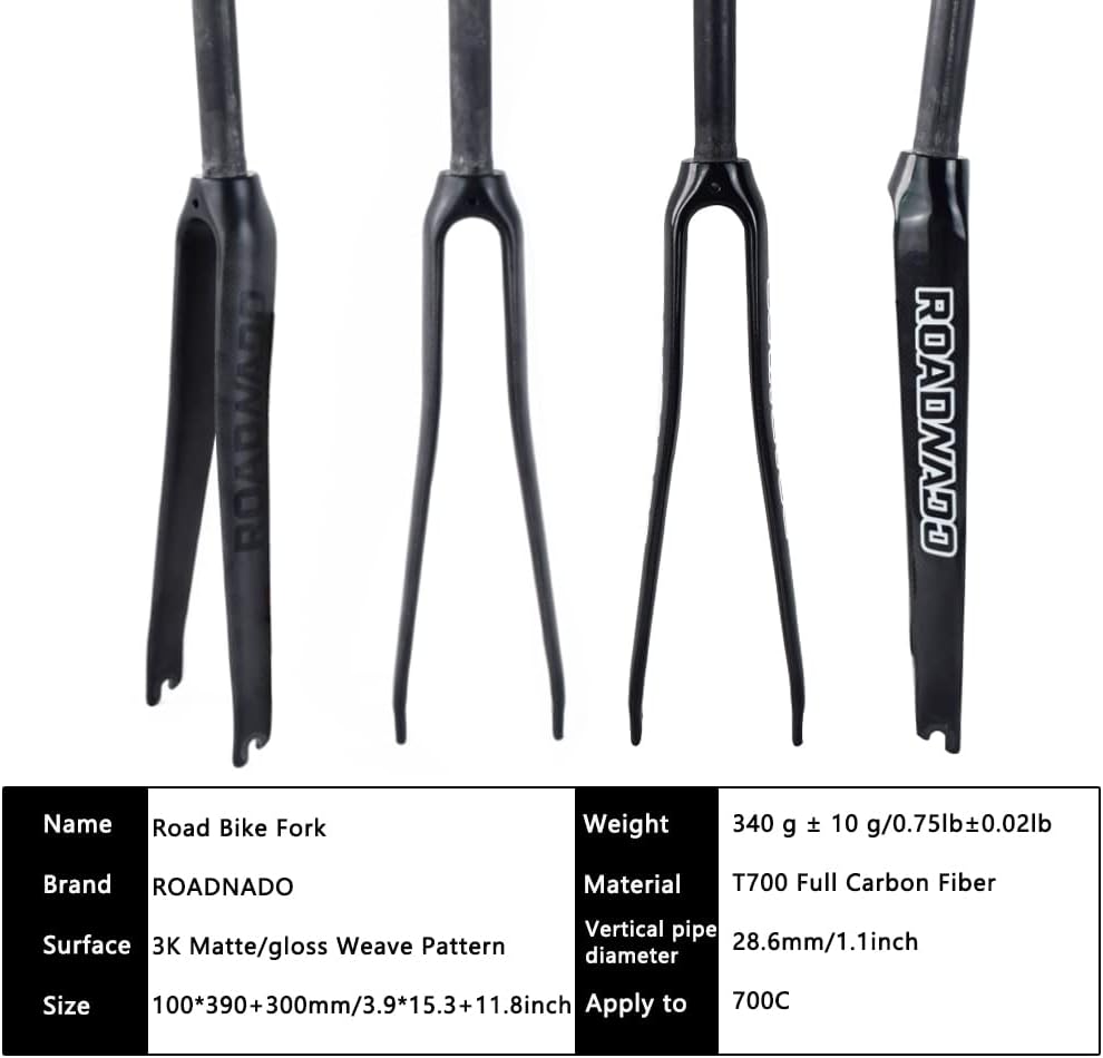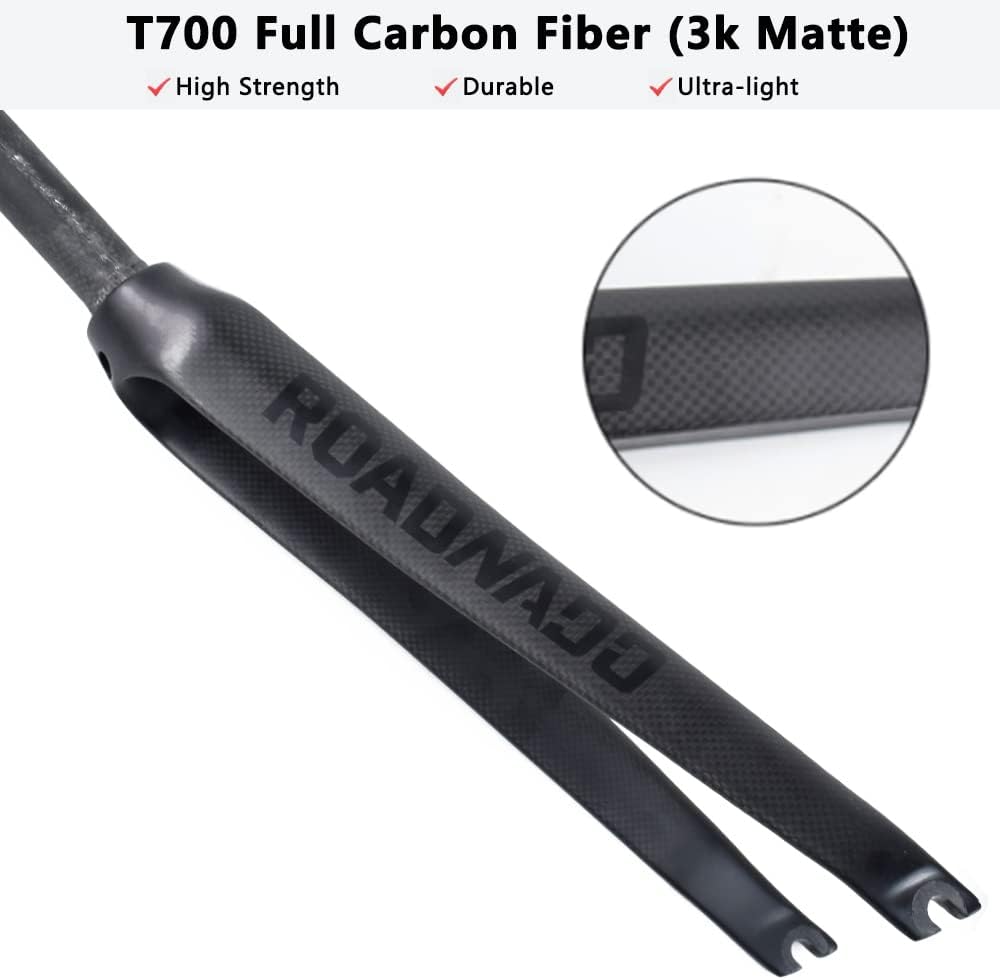 ROADNADO 700C شوكة دراجة الطريق من ألياف الكربون شوكة صلبة 700C*23/25 مم 28.6 مم شوكة دراجة من ألياف الكربون خفيفة الوزن لدراجة الطريق أسود لامع/لامع
