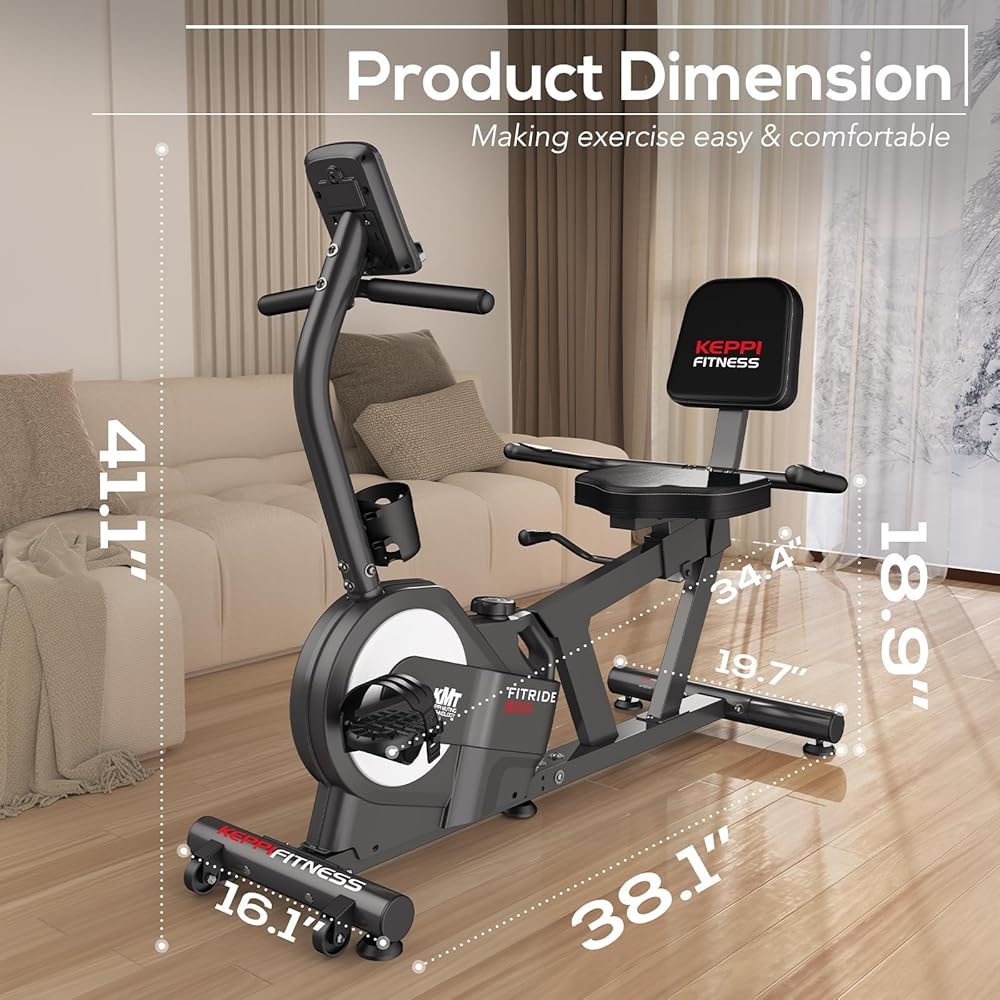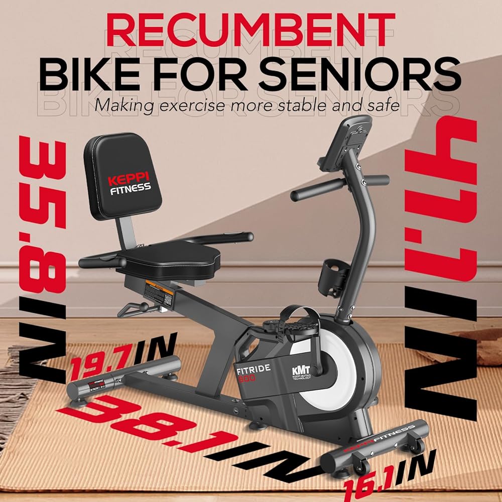 دراجة تمرين مستلقية من كيبي فيتنس مع 8 مستويات مقاومة مغناطيسية لتمارين القلب لكبار السن في المنزل، دراجة تمرين بسعة وزن 380 رطل مع مستشعر نبض، شاشة إلكترونية رقمية،