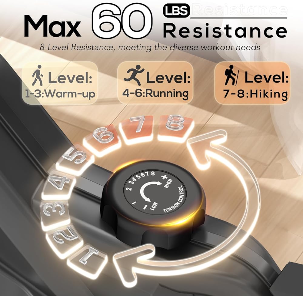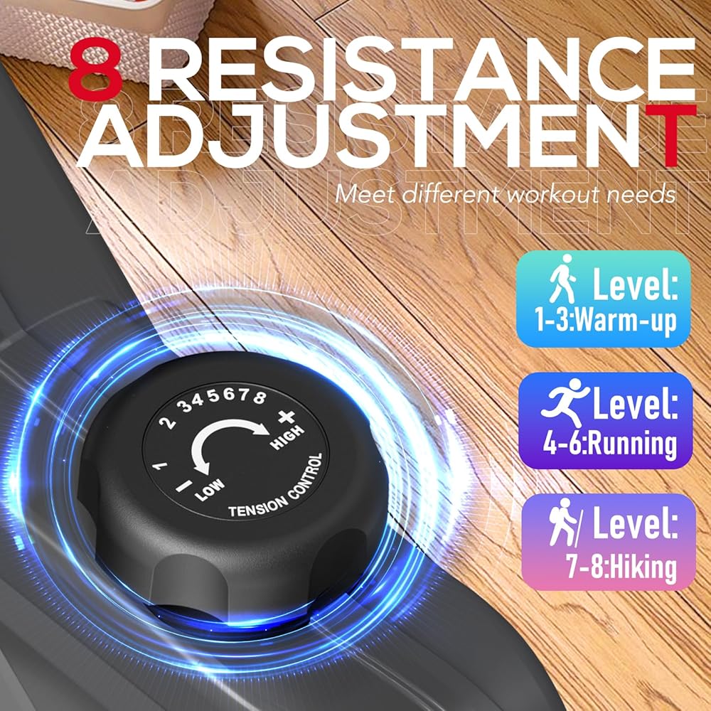 8 مستويات لضبط المقاومة المغناطيسية - دراجة تمرين مستلقية مع 8 مغناطيسات. تقنية كتم الصوت لنظام التردد المزدوج للدراجة المستلقية لتمنحك تجربة تمرين أكثر هدوءًا.