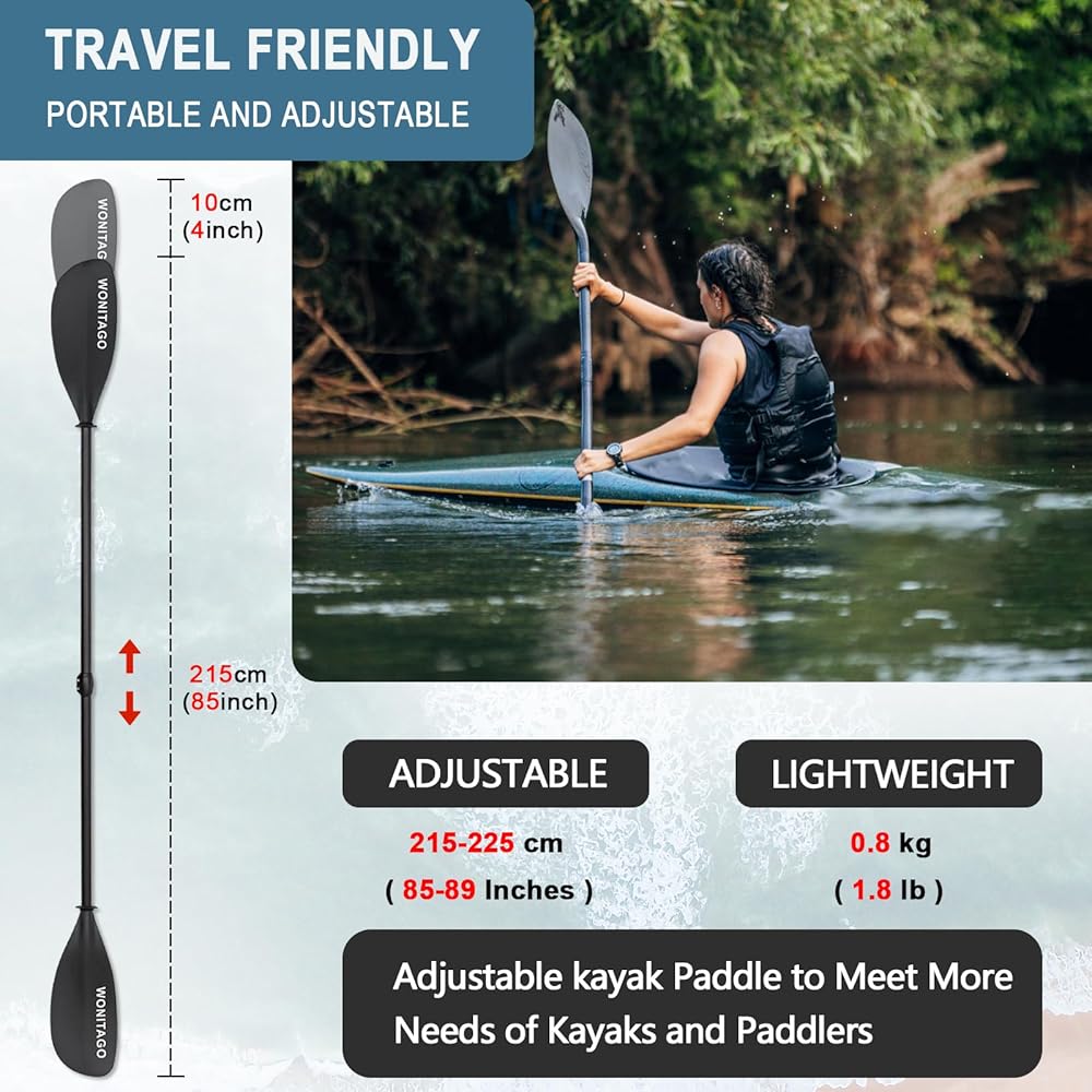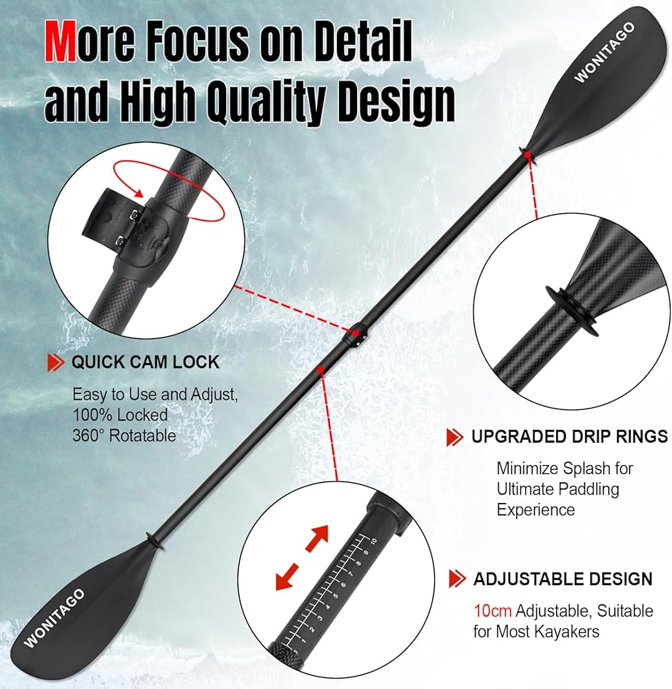 لماذا تختار WONITAGO --- مجاذيف الكاياك الخاصة بنا تقلل من التعب وتزيد من الأداء، مما يسمح لك بالتجديف لفترة أطول دون إزعاج. لذا، سواء كنت تستكشف الساحل، أو تتسابق أسفل النهر، أو تستمتع ببحيرة هادئة، فإن مجاذيف الكاياك الخاصة بنا هي الخيار الأمثل لمغامرتك القادمة.