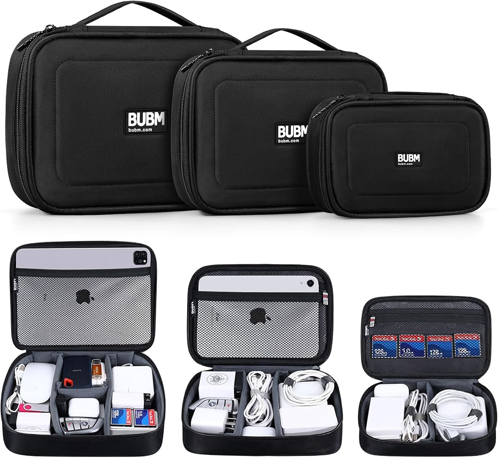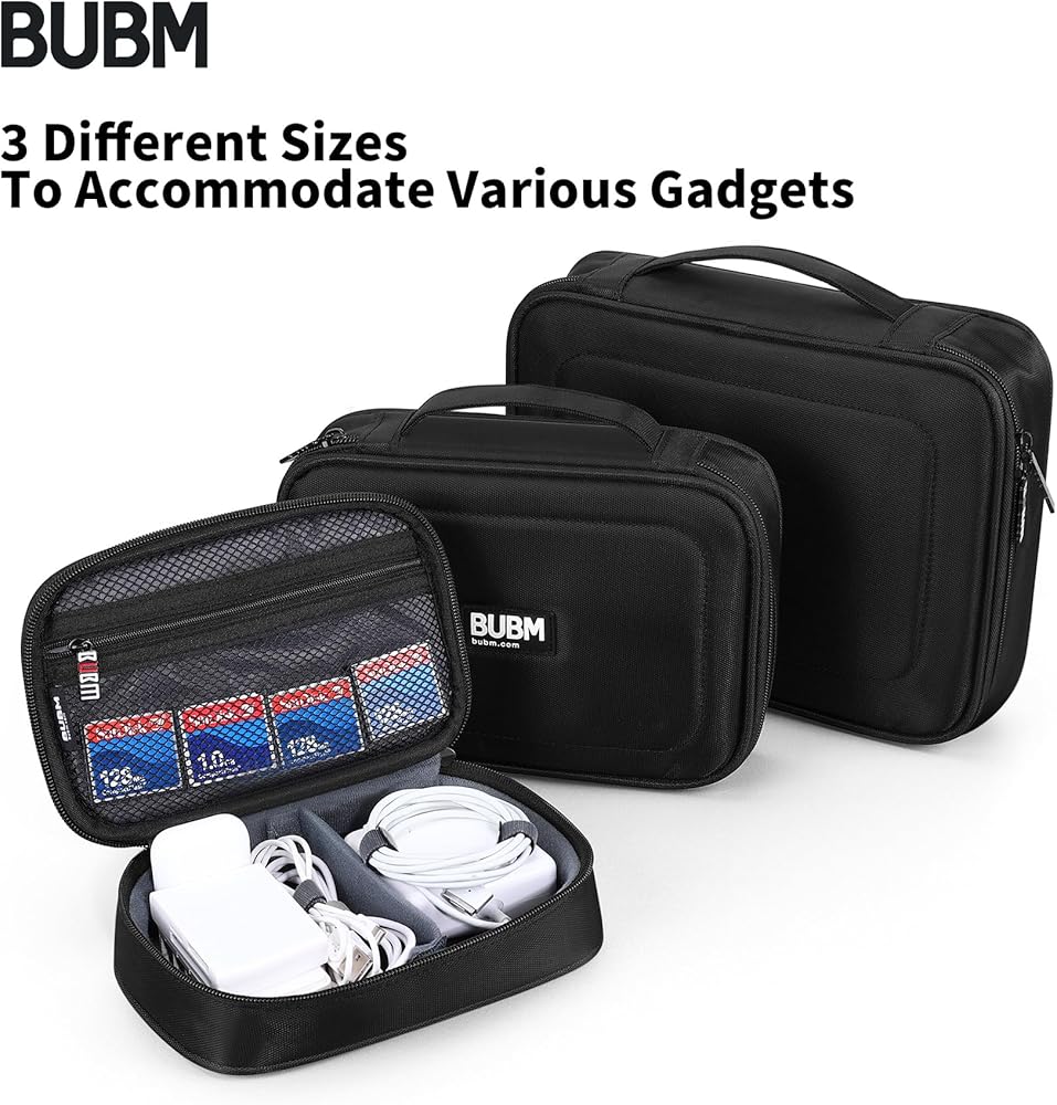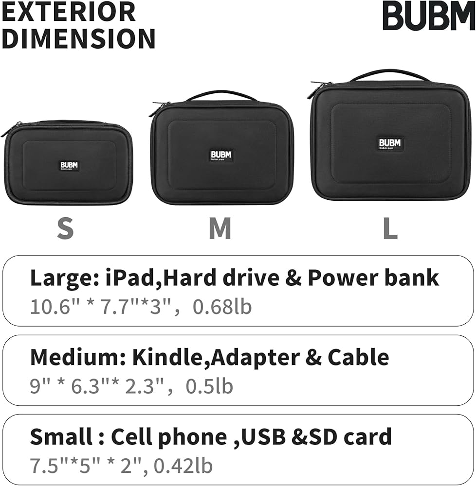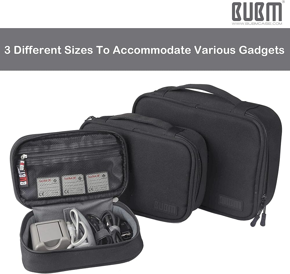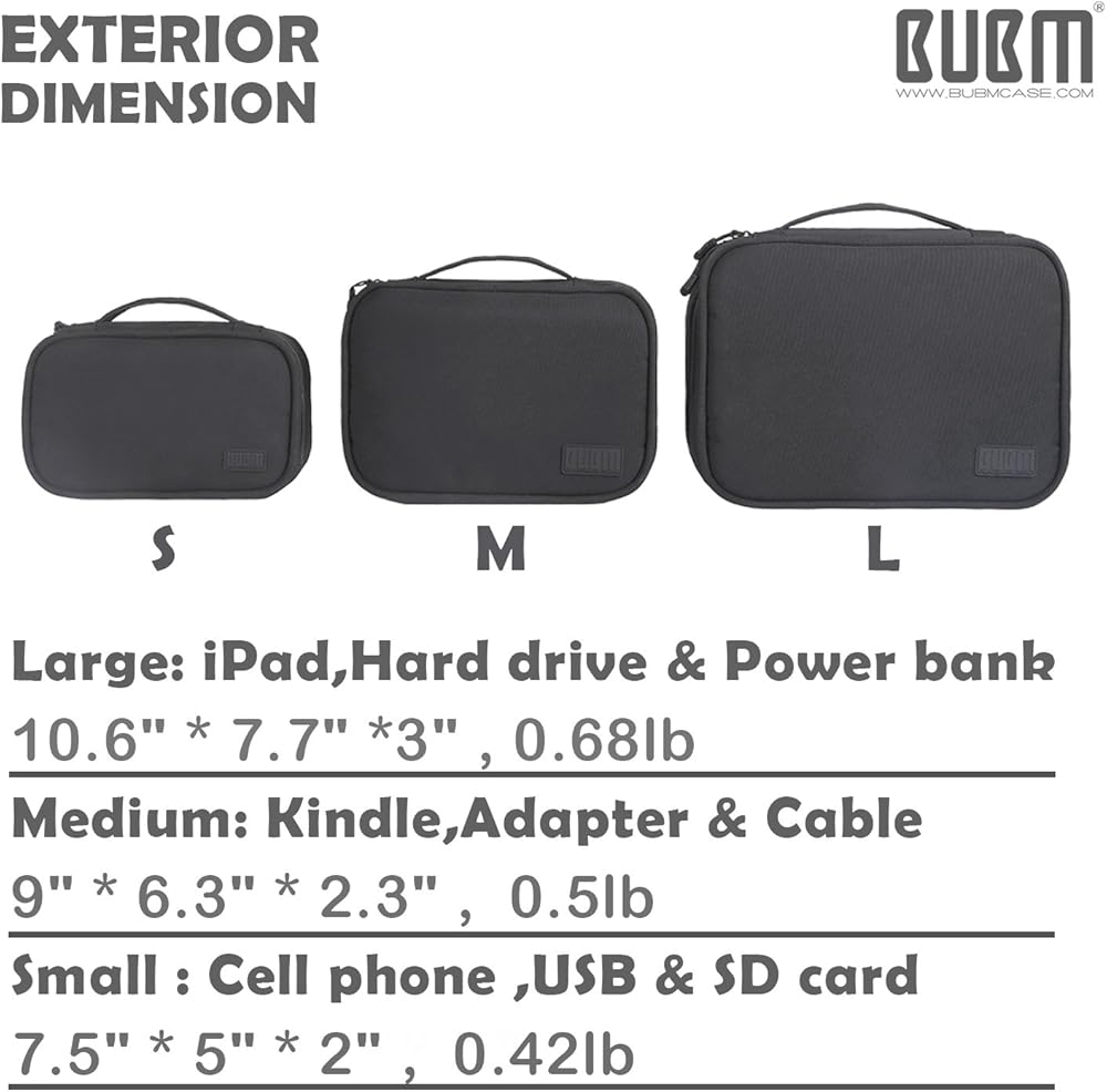 منظم جيد: تأتي حقيبة تنظيم الكابلات هذه بثلاثة أحجام. الحجم الكبير 10.6 في 7.7 في 3 بوصات ويزن 0.68 رطل. الحجم المتوسط: 9 في 6.3 في 2.3 بوصة، الوزن: 0.51 رطل. الحجم الصغير 7.5 في 5 في 2 بوصة ويزن 0.42 رطل.