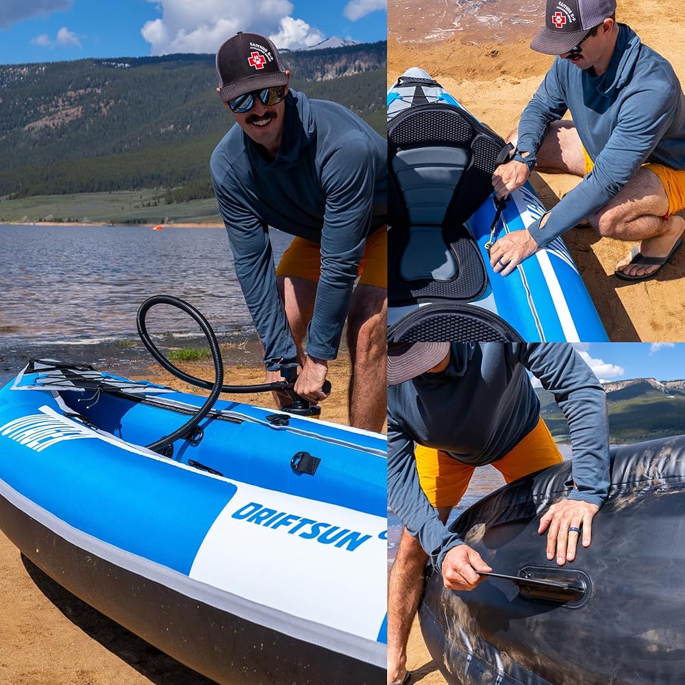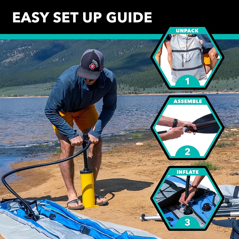 • يتم النفخ بسرعة: يتم نفخ Driftsun Voyager Kayak إلى قوارب الكاياك بالحجم الكامل (10 أقدام × 35 بوصة × 16 بوصة) في أقل من 5 دقائق باستخدام المضخة اليدوية المزدوجة عالية التدفق الفاخرة المتضمنة. انتقل من المرآب إلى صندوق السيارة إلى الماء في وقت قصير!