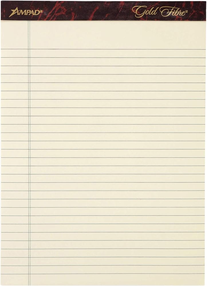 Vintage-inspired pads with classic appeal and decorative binding; these writing pads make a bold professional statement. Features smooth 20-lb. paper and strong chipboard back for easy handheld use. Microperforated for clean sheet removal. 50 sheets per pad. Four pads per pack. Global Product Type: Paper Pads/Note Pads-Ruled; Pad Type: Ruled; Sheet Size (W x H): 8 1/2 in x 11 3/4 in; Ruling Color(s): N/A.