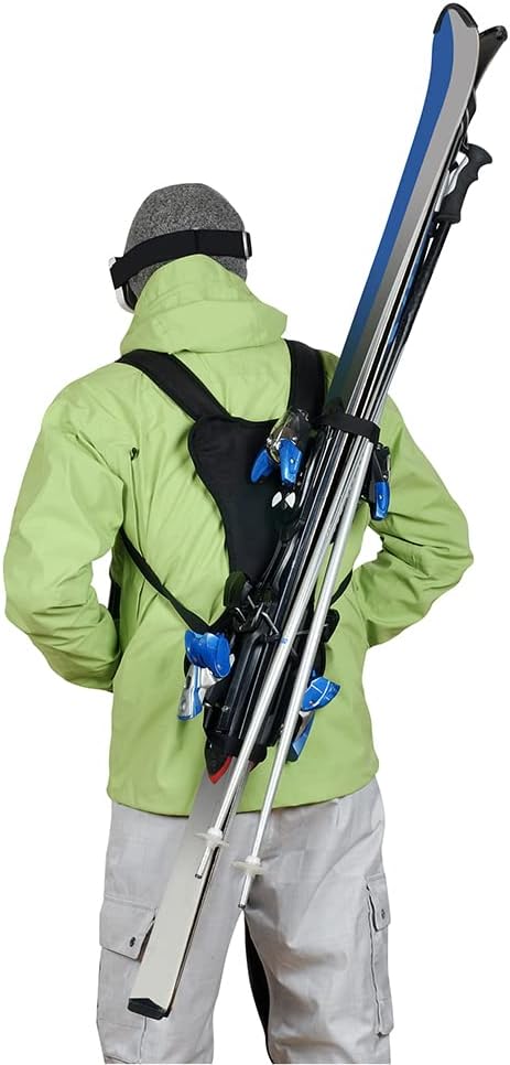 > Easy to install (10 seconds): slide your skis into the bottom loop and close the top loop and then position the Skiback on your back like a backpack.