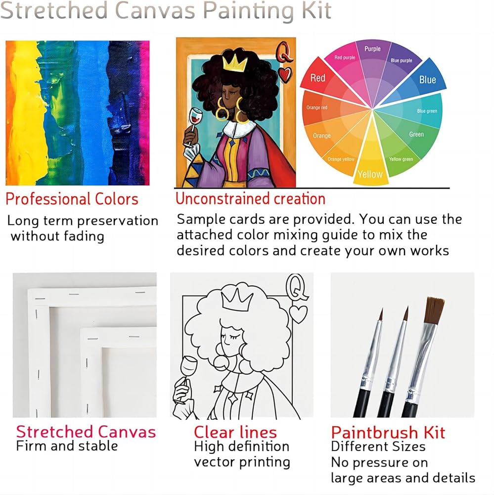 قماش ممتد: يتم تمديد لوحات الرسم عالية الجودة وتثبيتها على إطار خشبي معالج جاف لتسهيل الرسم المستقر عليها. تتم طباعة اللوحات القماشية مسبقًا بخطوط سوداء واضحة.