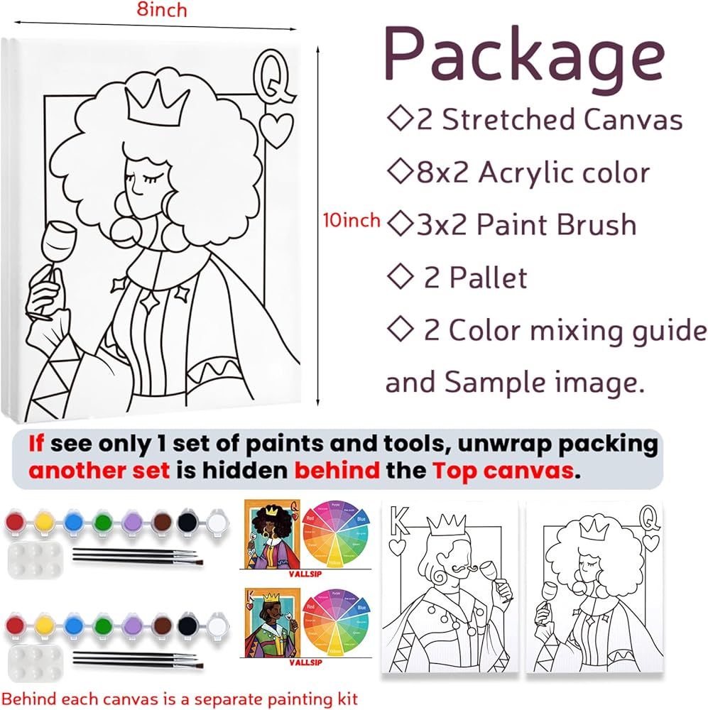 vallsip 2 حزمة الطلاء ورشفة قماش اللوحة عدة قماش مرسومة مسبقا للرسم للبالغين قماش ممتد الأزواج ألعاب التاريخ ليلة بطاقة اللعبة مشهد هدايا الذكرى السنوية زوجين الطلاء الطرف (8x10)