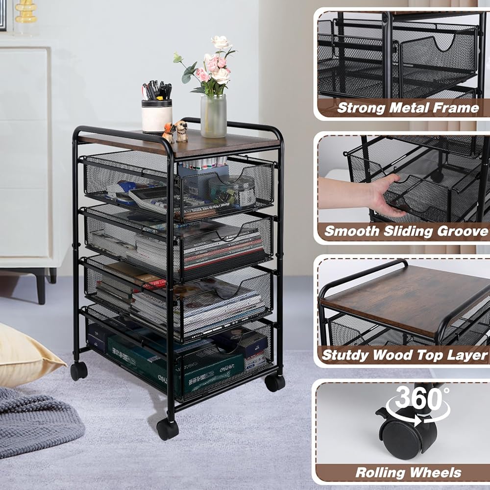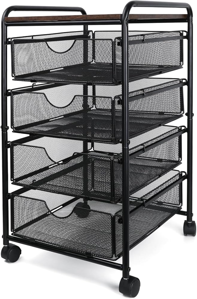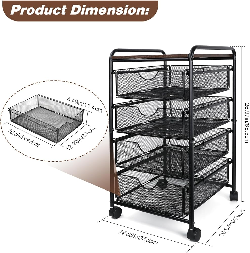 • The rolling file cart morphs your messy desks into a clutter-free workspace. Including 4 drawers for paper reams, binders, etc., it's a bona fide portable storage organizer