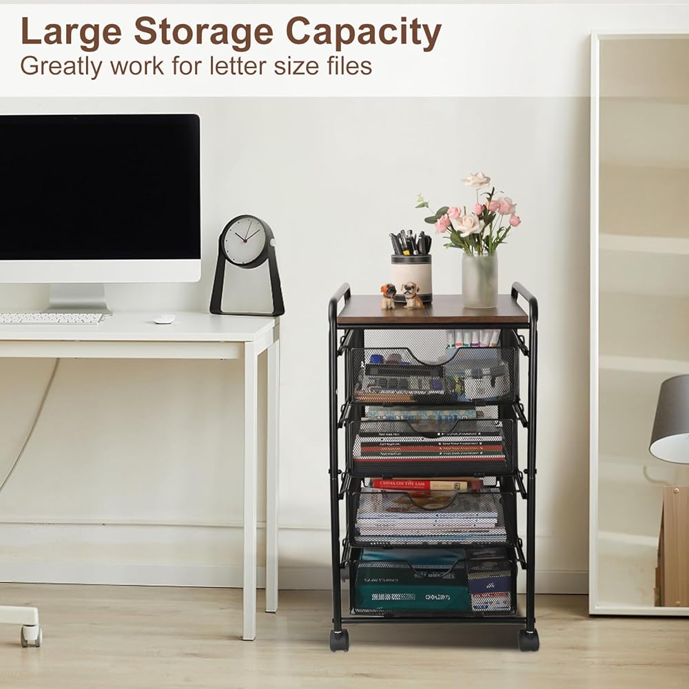• This mesh metal file cart with a powder coat finish that capitalizes on your space fully. Particularly catered to those needing an office rolling file cart, this metal file folder cart gets it all done for you