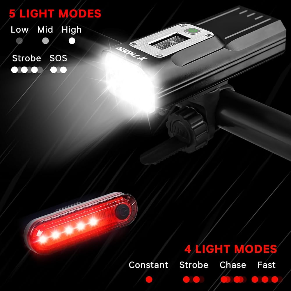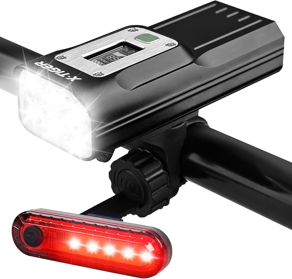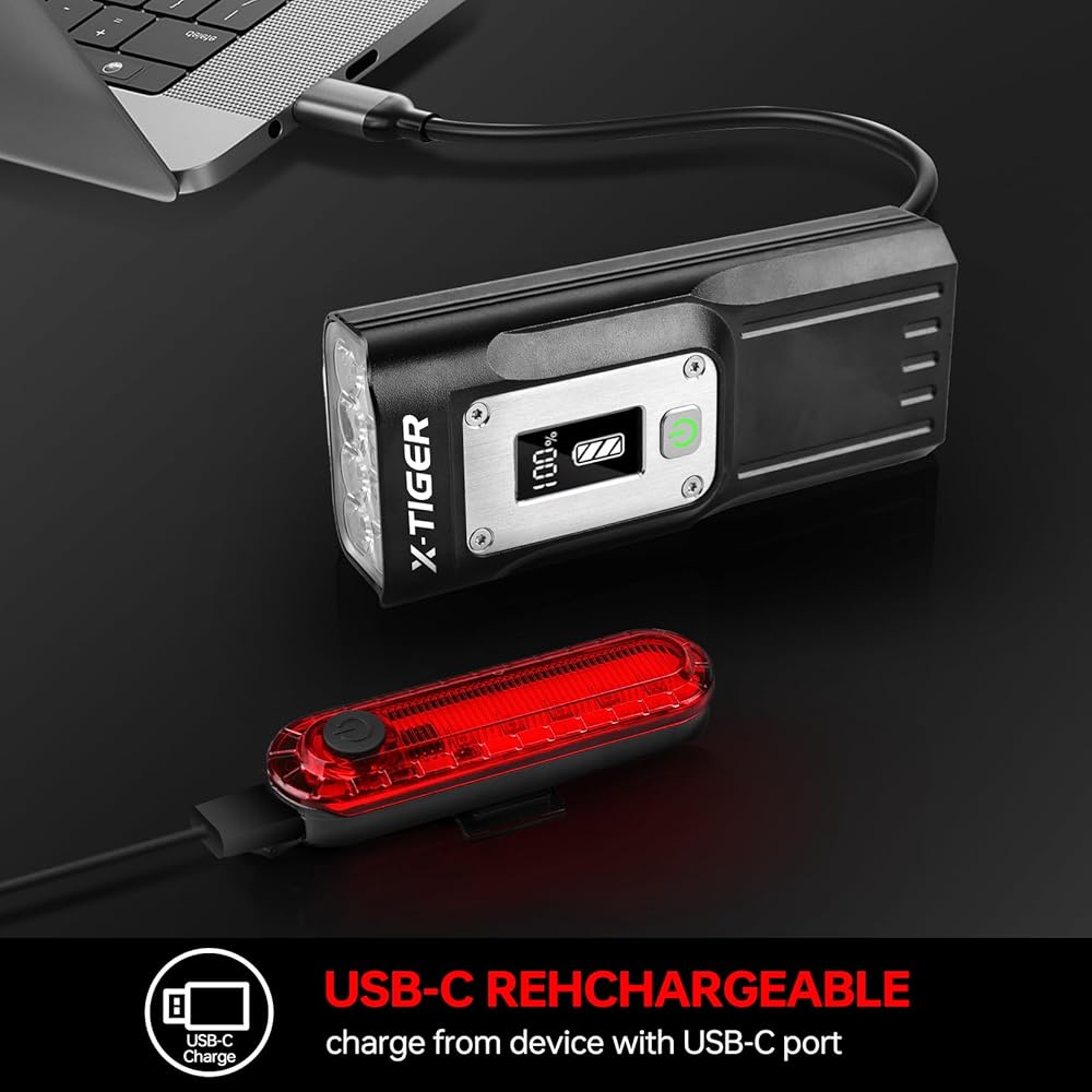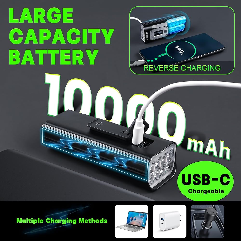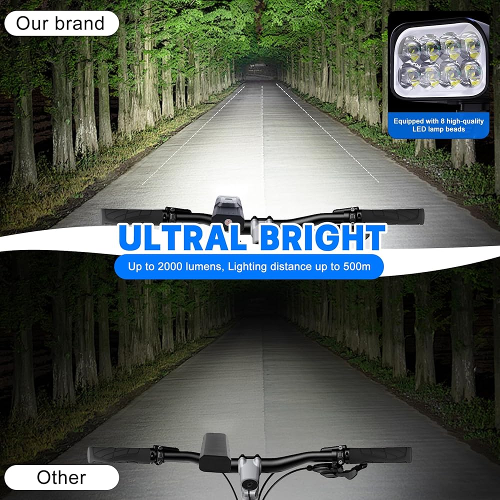 مصابيح دراجة X-TIGER 8 LED 2000 لومن، مصباح أمامي فائق السطوع للدراجة مع شاشة عرض البطارية، مصباح دراجة USB C قابل لإعادة الشحن 10000 مللي أمبير في الساعة، ملحقات دراجة الطريق الجبلية تناسب جميع الدراجات