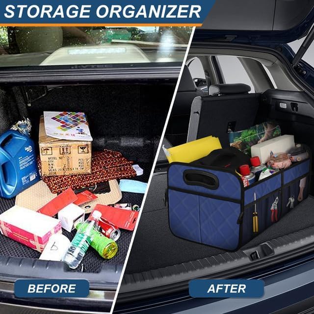 【سعة كبيرة】: منظم صندوق السيارة متعدد الأقسام للسيارة بسعة 50 لتر/70 لتر و6 جيوب لتلبية احتياجاتك لتنظيم وتخزين الأشياء في الحياة اليومية.