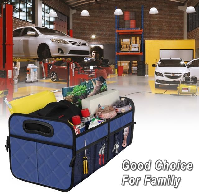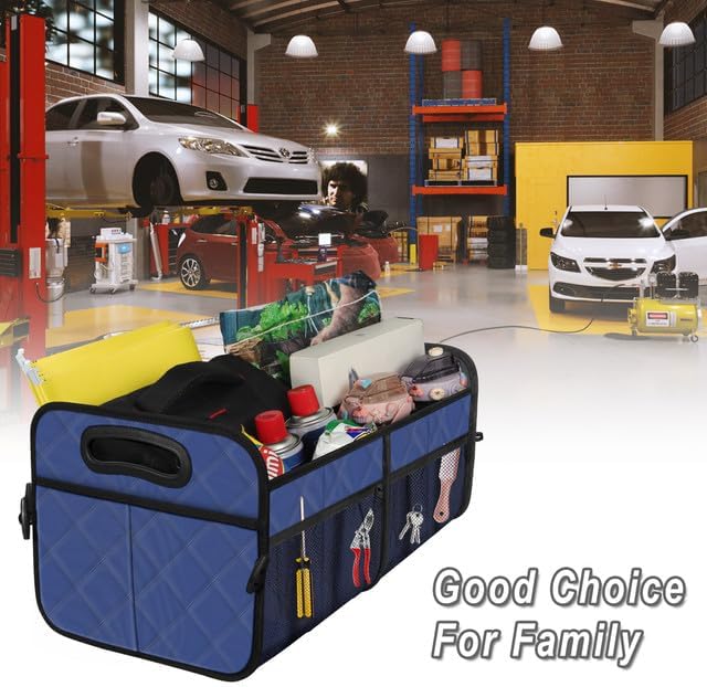 منظم صندوق السيارة من ديوسك، منظمات السيارة القابلة للطي والتخزين مع 6 جيوب، منظم صندوق السيارة متعدد المقصورات سعة 50 لتر، ملحقات السيارة للنساء والرجال - أزرق