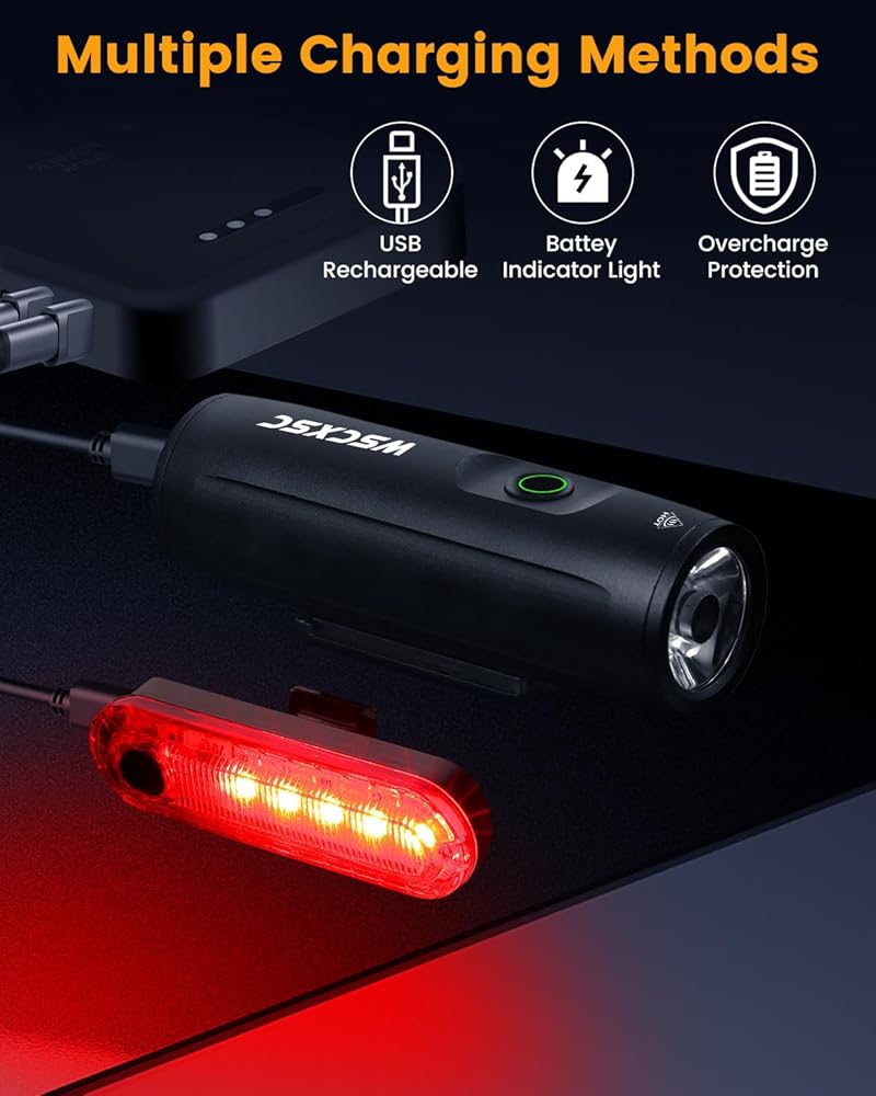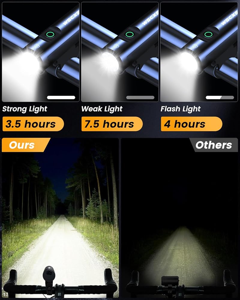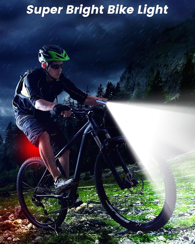 [مجموعة مصابيح الدراجة فائقة السطوع]: يضيء المصباح الأمامي للدراجة شعاعًا قويًا بعيدًا وواسعًا على الطرق والممرات مما يجعل من السهل رؤيتها ورؤيتها! يمكن للسيارات رؤيتك إذا اقتربت من جانبك عند التقاطع. يتضمن ضوء خلفي مجاني. تتميز بسعة كبيرة تبلغ 8000 مللي أمبير في الساعة، مما يسمح بفترة تشغيل تتراوح من 3.5 إلى 7.5 ساعات، مما يجعلها مثالية لجلسات ركوب الدراجات الممتدة.