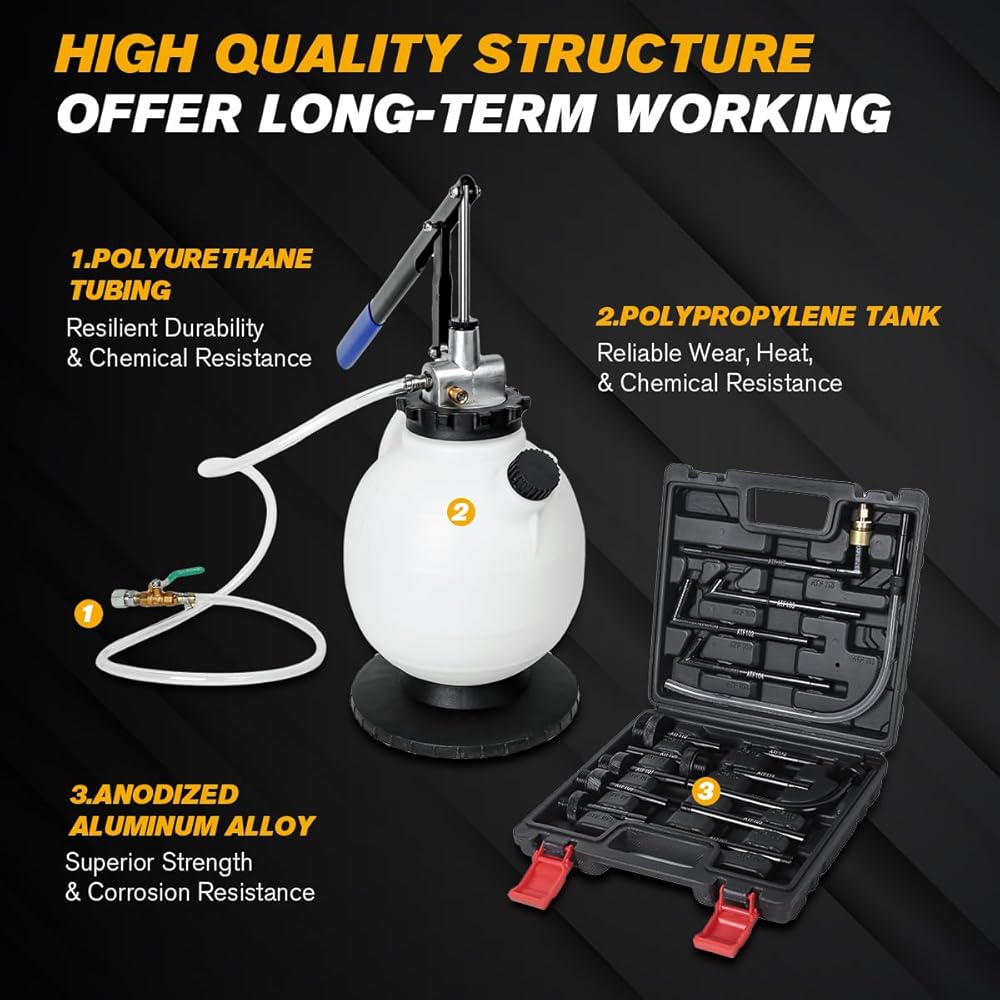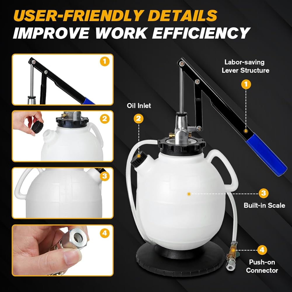 - استخلاص السوائل بكفاءة: استخرج زيت ناقل الحركة دون عناء باستخدام مضخة سائل ناقل الحركة عالية الجودة.