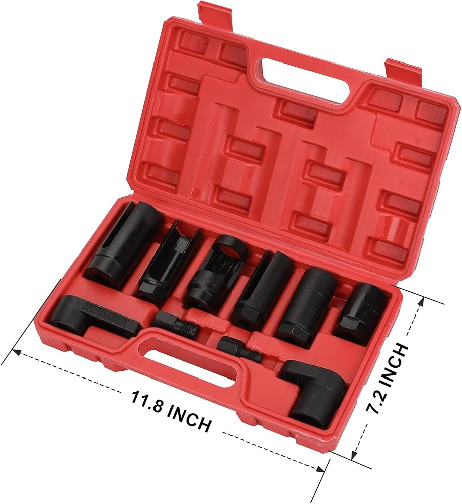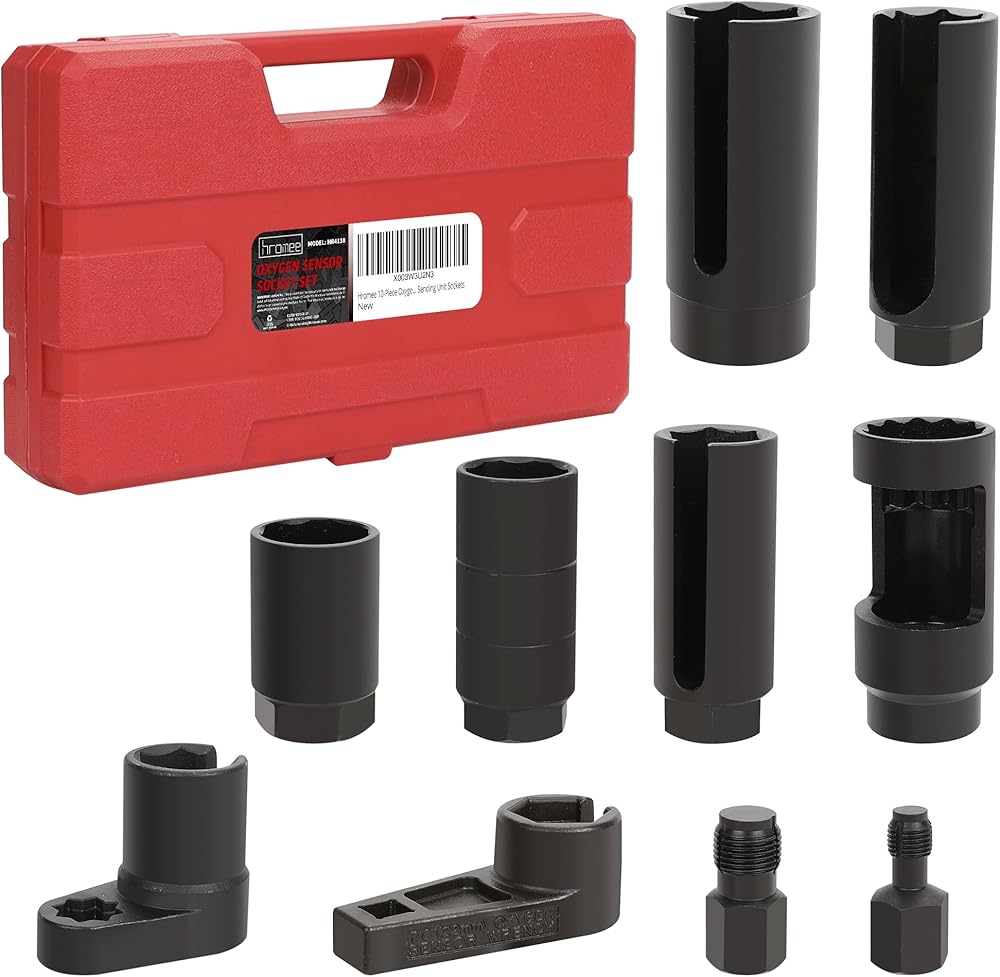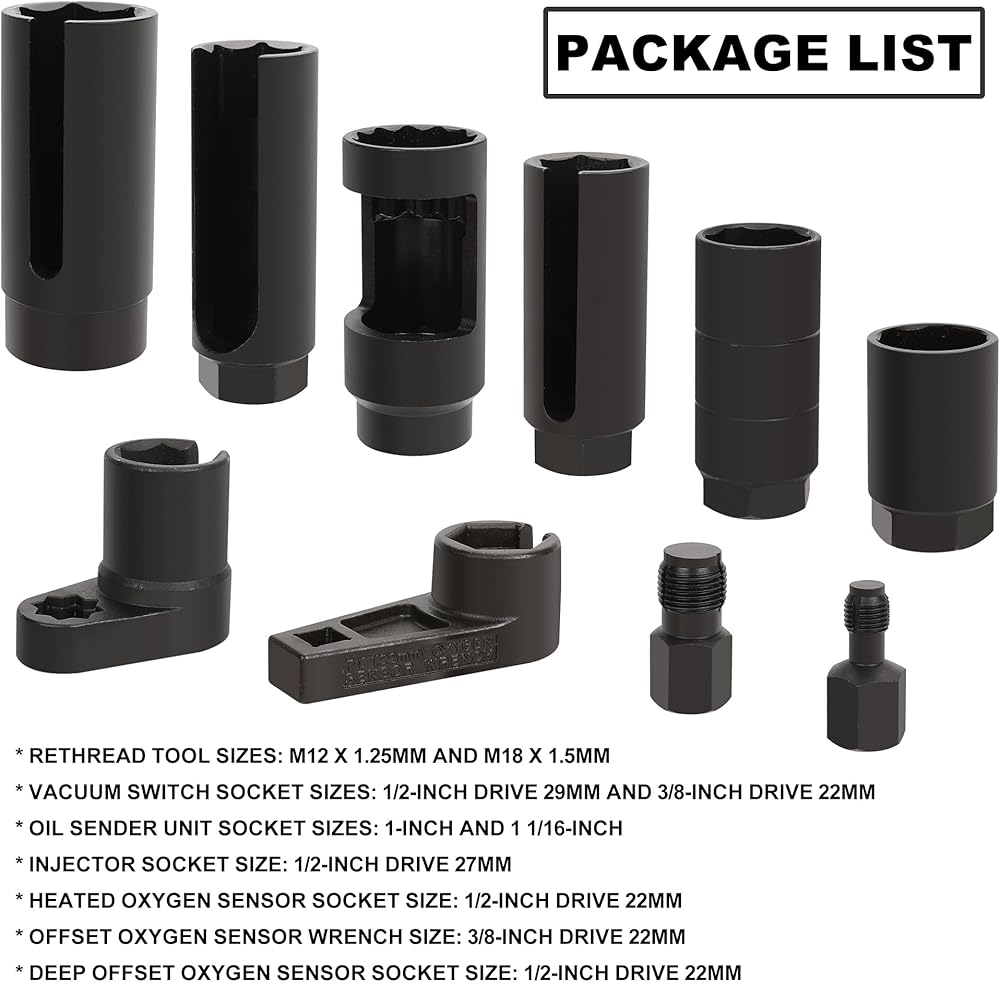 مجموعة مقابس مستشعر الأوكسجين من 10 قطع من Hromee مع مطاردات الخيوط، ومقبس الحاقن ووحدة إرسال الزيت، مجموعة أدوات إزالة مستشعر الأوكسجين 1/2 بوصة و3/8 بوصة مربعة