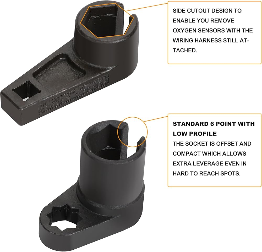 متينة: مصنوعة من فولاذ الكروم الفاناديوم المطلي بأكسيد أسود متين للحصول على صلابة وأداء فائقين. يتميز بمحرك مربع مقاس 3/8 بوصة أو 1/2 بوصة ليناسب محركات مفتاح الربط بمستشعر O2؛ للاستخدام مع السقاطة أو شريط الكسر أو مفتاح الربط اليدوي (أدوات التشغيل غير متضمنة)؛ غير متوافق مع أدوات التأثير.