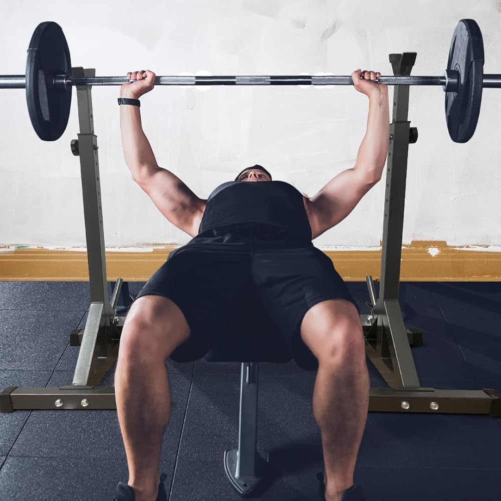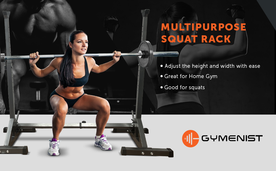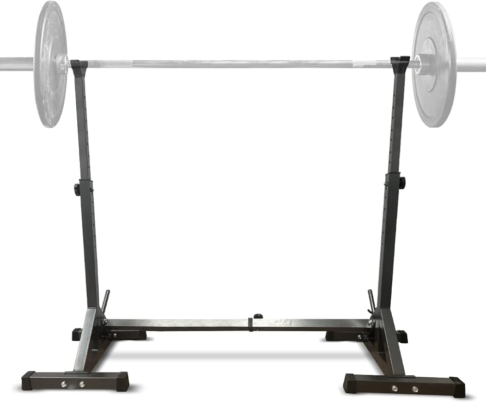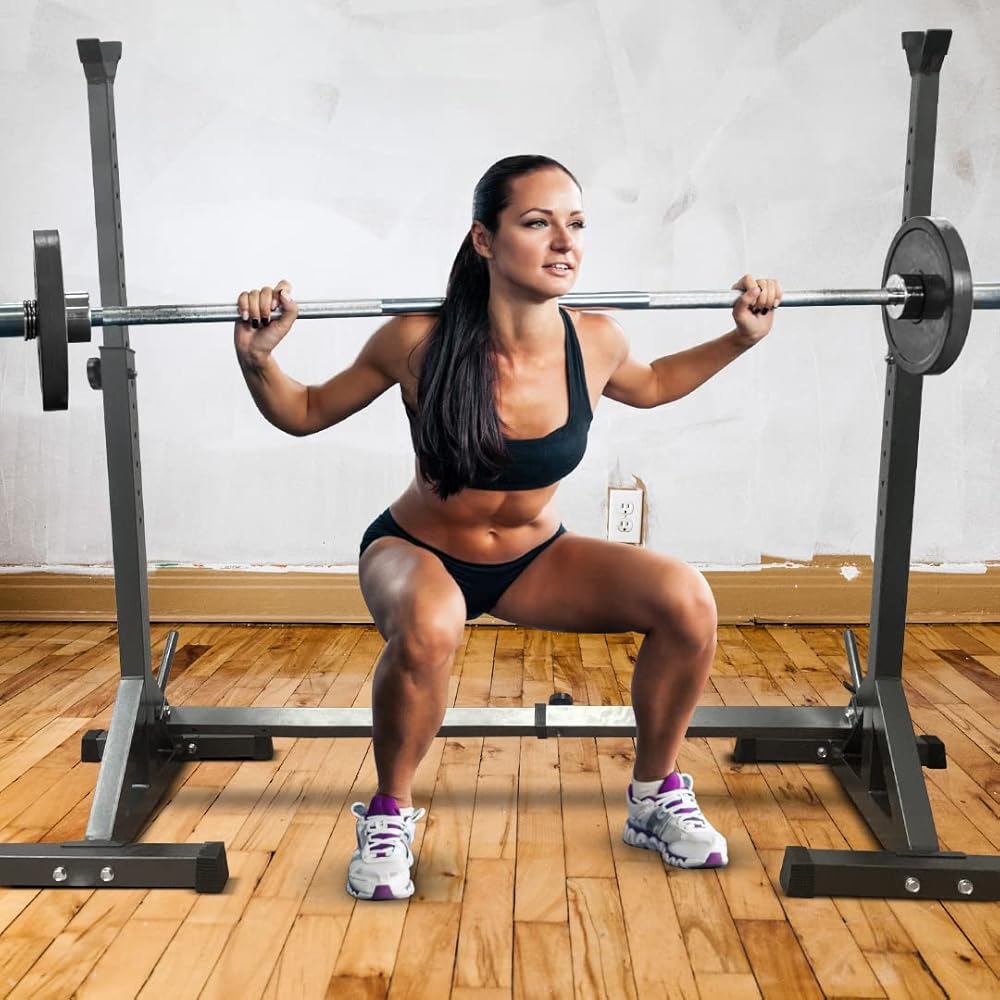 GOOD FOR SQUATS - This exercise storage rack is designed to help you work out effectively, providing optimal support for squats. Its sturdy, adjustable structure ensures your safety and allows you to adjust the height for different levels of intensity.