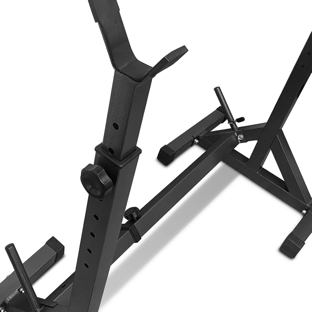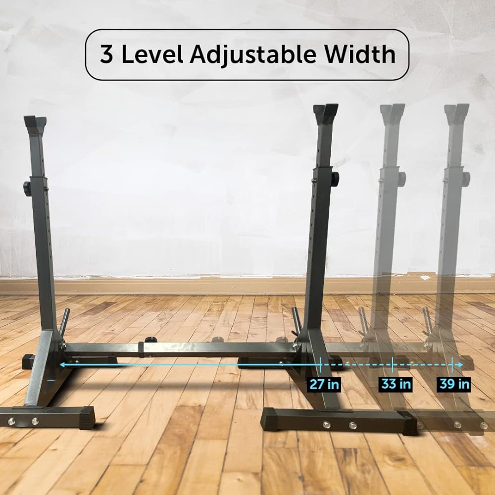 ADJUST THE HEIGHT AND WIDTH WITH EASE - These adjustable racks make it easy to customize your workout space and create a good fit for your weights. Height and width can be adjusted with just the turn of a knob, providing you with maximum convenience and flexibility.