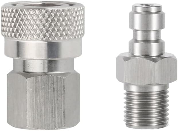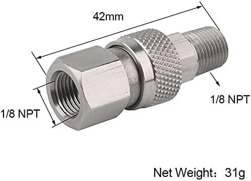 Manloney LLC Universal 1/8 NPT to 8MM Quick-disconnect Foster Fill Adapter HPA Paintball CO2 Refill Air System Plug Connector Fittings (Type-3) Description: This is helpful if you are trying to move air in a big bottle to a smaller more portable bottle, to get a SCBA tank filled, to move air from one tank to PCP air gun or paintball. Simply connect each fill adaptor to the female and male thread air tool fittings, a paintball tank fitting. Feature: - Material: Stainless steel - Size: 8mm quick plug, 1/8 inch NPT thread - Working Pressure: 4500psi - Max Pressure Control: 6000psi Package: 1x 8mm male plug to 1/8 NPT male thread adapter 1x 8mm female plug to 1/8 NPT female thread adatper