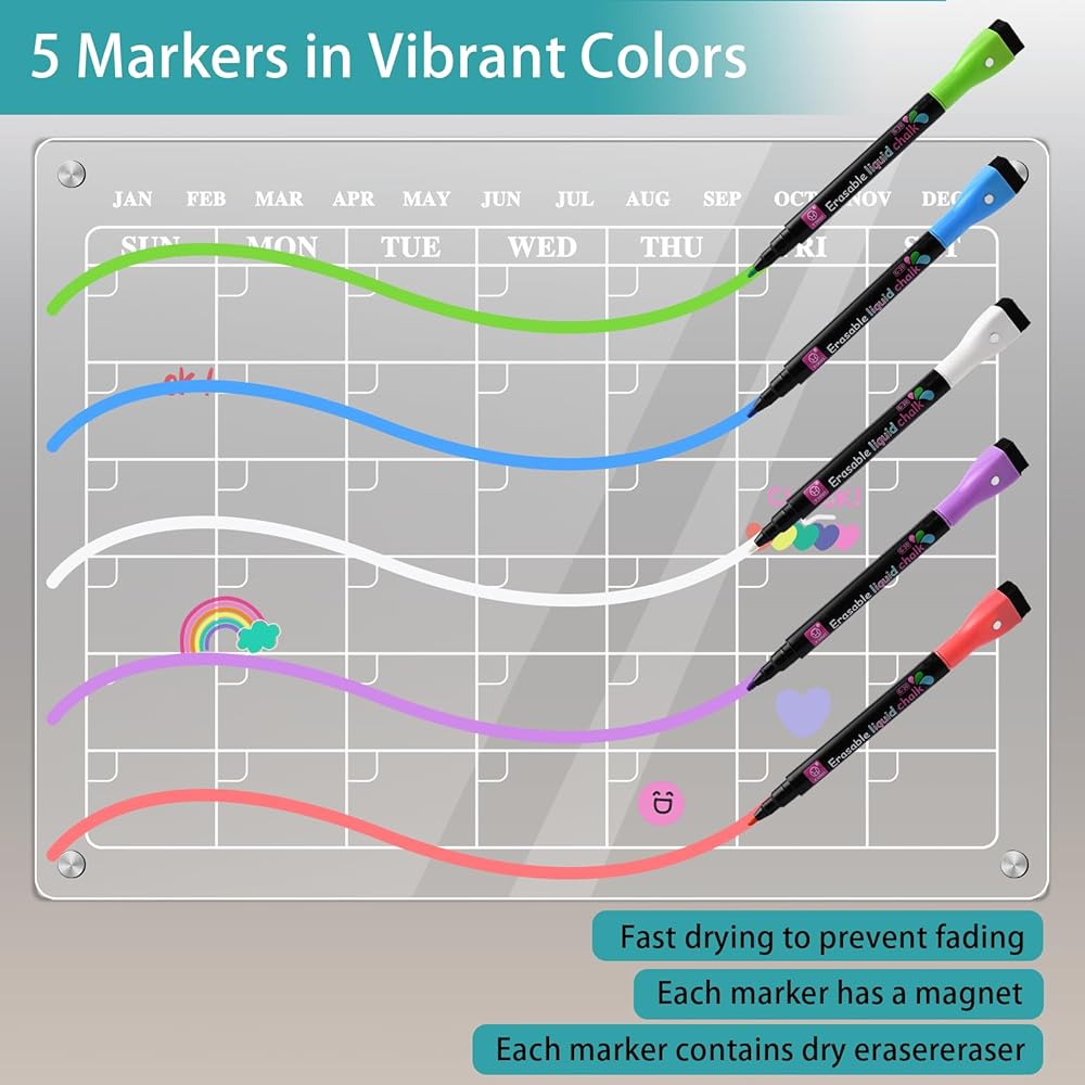 ✏️ 5 علامات واضحة للغاية وسهلة المسح - مجموعة المسح الجاف لتقويم الثلاجة المغناطيسي تأتي مع 5 علامات مع 5 ألوان نابضة بالحياة يمكن رؤيتها على أي خلفية، فاتحة أو داكنة. تكتب الأقلام بسلاسة شديدة، والكتابة واضحة والحبر سريع الجفاف يمنع البهتان والتلطيخ. ومن السهل مسح العلامة دون ترك علامات أو ظلال، ويمكن مسحها بسهولة للحفاظ على التقويم نظيفًا وواضحًا في جميع الأوقات.