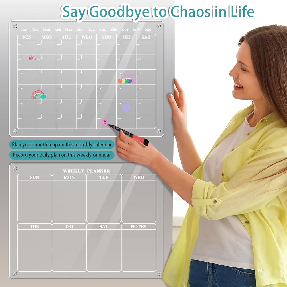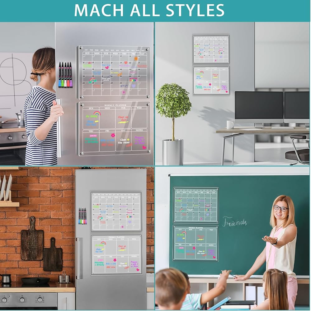 🌈 مادة أكريليك عالية الجودة - تقويم الأكريليك للثلاجة مصنوع من الأكريليك عالي الشفافية، والذي يتميز بمقاومة ممتازة للتآكل، والتصميم يجعله أكثر أناقة وعصرية. يمكنك بسهولة تدوين الأحداث القادمة، والتي تشكل خطة أسبوعية وخطة شهرية لإبقاء الأسرة بأكملها في جدول زمني.