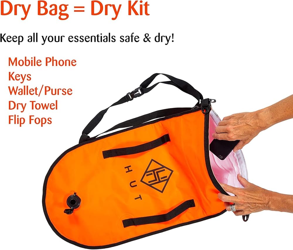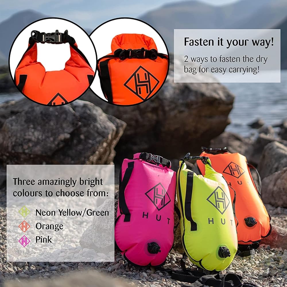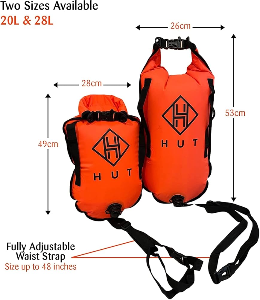 The HUT range of swim buoy dry bags and tow floats is there our journey began. They are made with tough, durable nylon with PVC coating they are completely waterproof making it safe to store your valuables when you swim. We have thoroughly tested these tow floats and dry bags in some pretty harsh conditions and they passed with flying colors each time. Use them in lakes, rivers or the ocean – they go wherever you go.