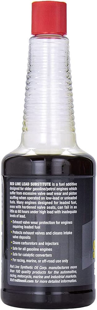 Designed for racing, marine, or off-road use only, this Red Line lead substitute prevents valve seat recession in vehicles designed to use leaded fuels. This additive prolongs the useful life of these engines, cleans carburetor deposits and injectors, and will not damage catalytic converters.