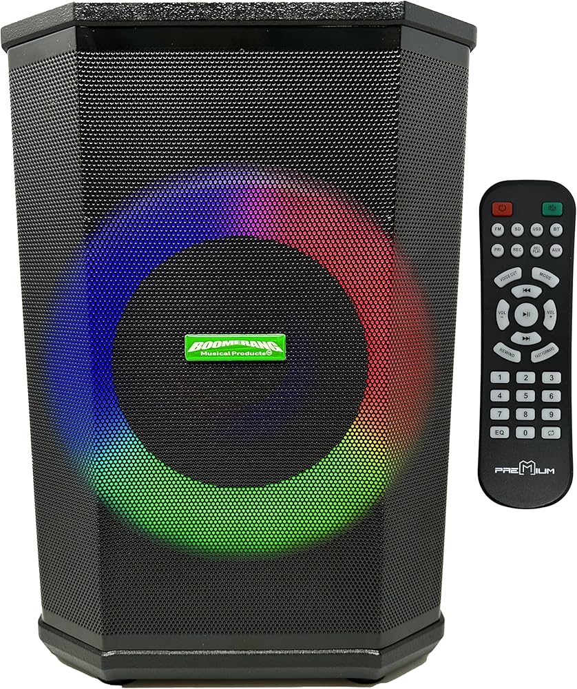 مكبر صوت Boomerang Looper BoomBoxx (شاشة تعمل بالطاقة) مقاس 8 بوصات - بلوتوث - راديو FM - 3 مداخل - تأثيرات Onbard - ضوء متعدد الألوان - فتحة ذاكرة - محمول ويعمل بالبطارية - جهاز تحكم متضمن
