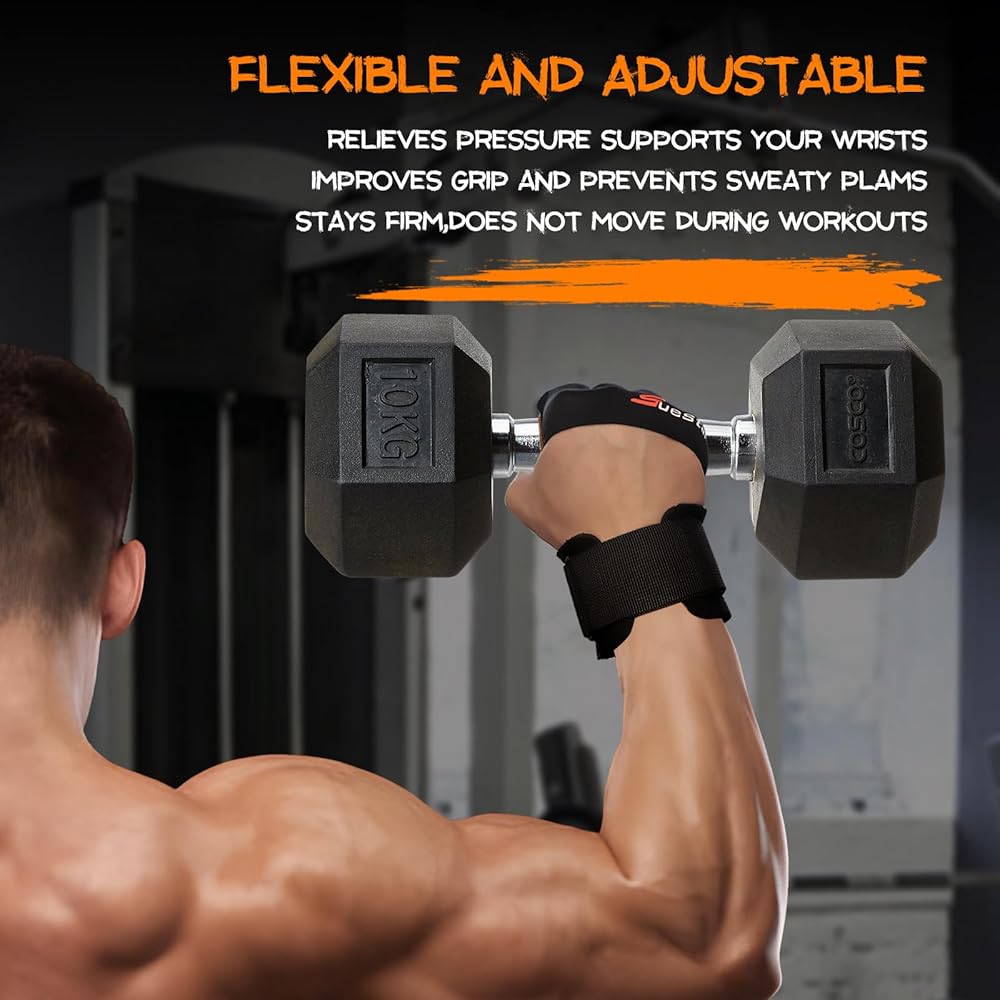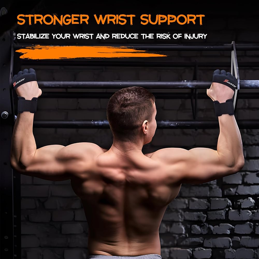 قفازات رفع الأثقال من SueStar، قفازات تمرين راحة اليد من جلد البقر شديدة التحمل مع دعم لفافات المعصم، حماية كاملة لراحة اليد ومقابض سيليكون وقفازات الصالة الرياضية لرفع الأثقال والرفع الميت والتمرين