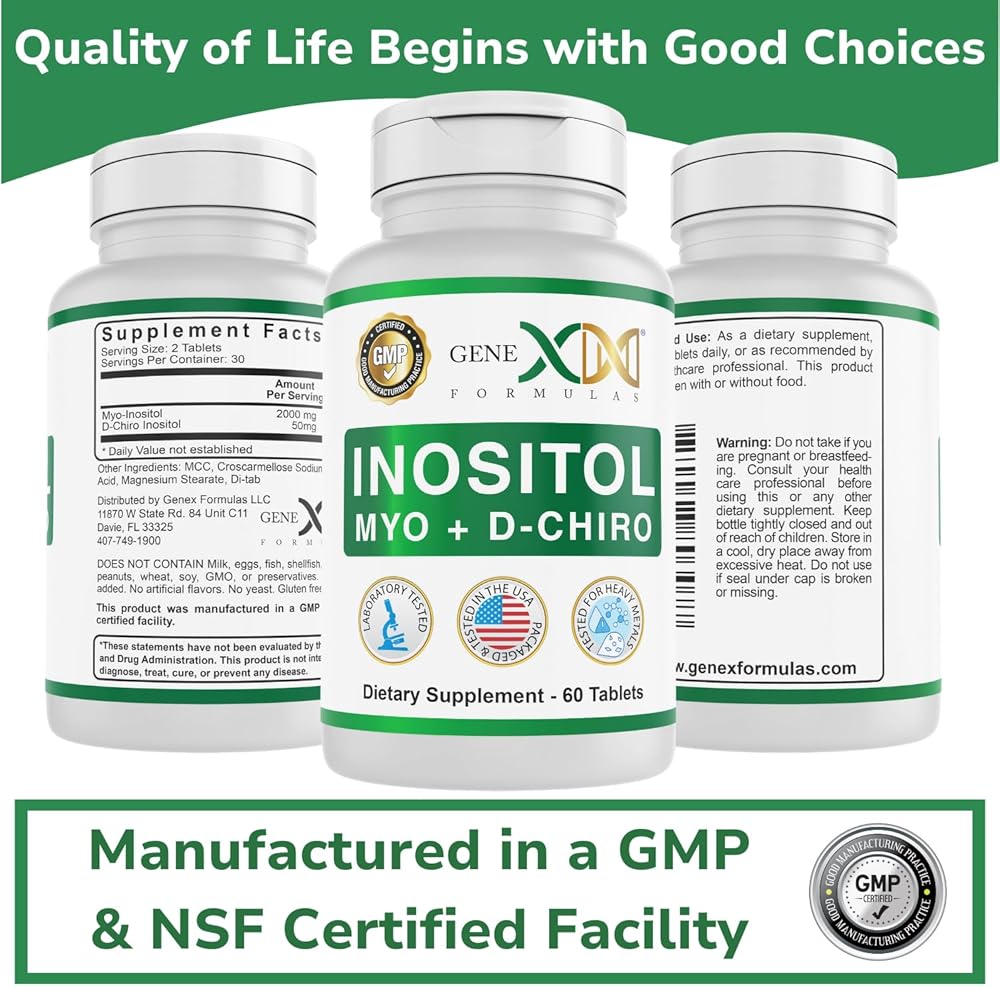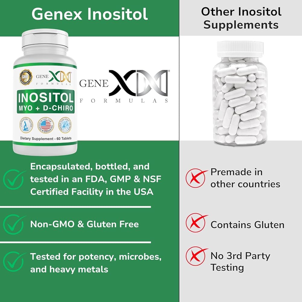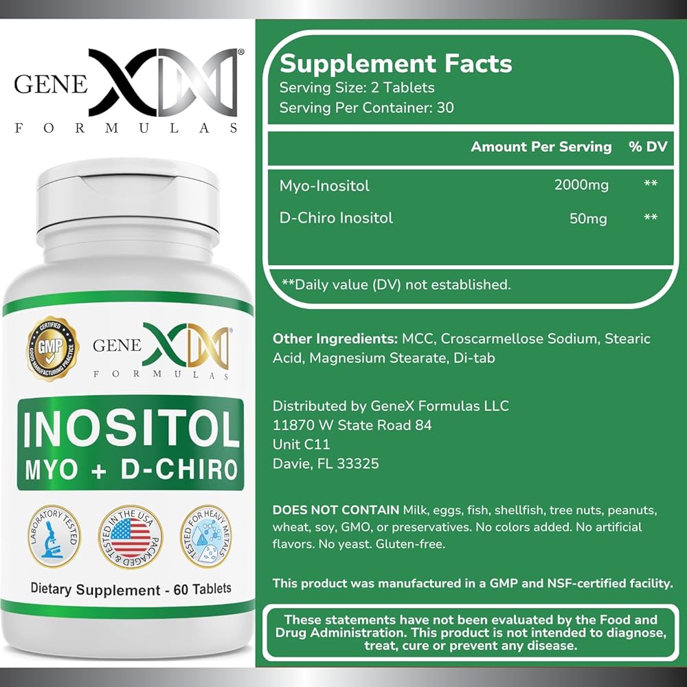 • كمية تكفي لمدة 30 يومًا - تحتوي أقراص Genex Formulas Myo & D-Chrio Inositol على 2000 مجم من Myo-Inositol و50 مجم من D-Chiro Inositiol، النسبة الموصى بها 40:1. كبسولات الأقراص الخاصة بنا عديمة النكهة وسهلة البلع، وتحتوي كل زجاجة على 60 قرصًا. تناول قرصين يوميًا لمدة 30 يومًا في كل زجاجة!