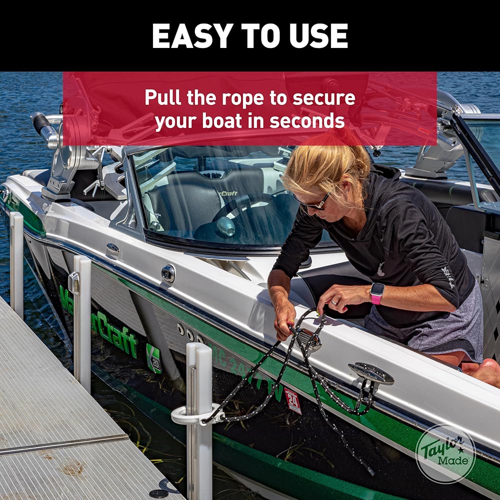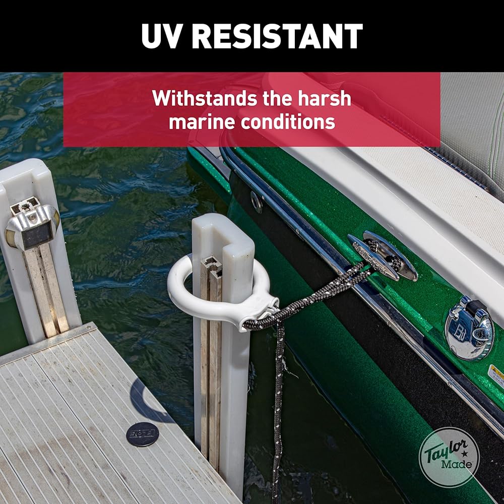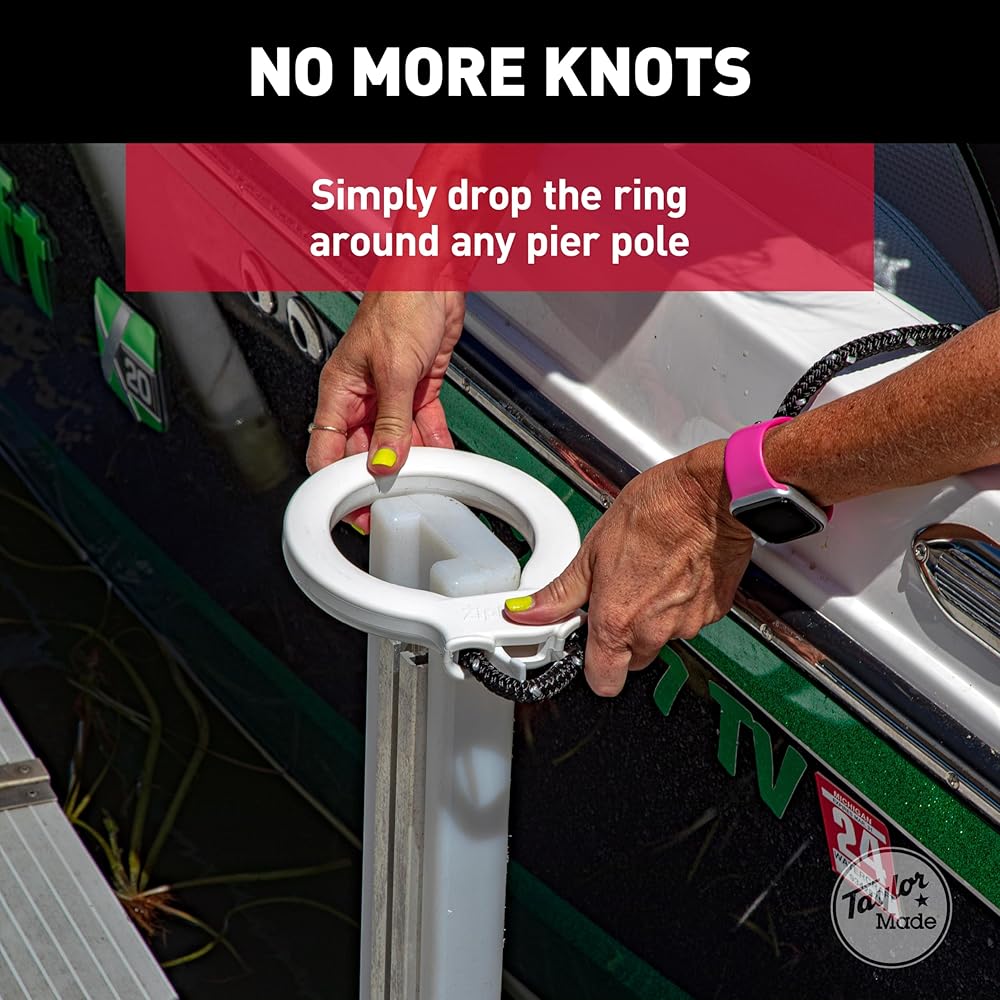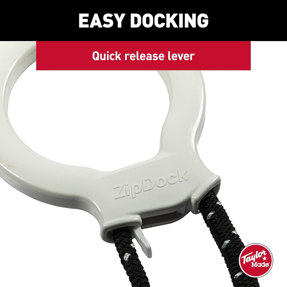 Experience a new level of convenience and efficiency with the ZipDock boat mooring system by Taylor Made. This revolutionary docking solution is expertly engineered to provide simplicity and ease of use, featuring a self-locking mechanism that effortlessly adjusts to accommodate changes in tide. With 8' of durable braided rope, you can say goodbye to frayed lines and tangled messes. Eliminating the need for traditional dock lines with loops, the ZipDock system ensures a seamless docking experience, sparing you the hassle of dealing with knots. Upgrade to ZipDock and streamline your docking process.Make knot tying and untying a thing of the past with the Taylor Made ZipDock boat mooring system. Simply wrap the universal UV-stabilized polymer ring around any pier pole, tighten the rope and effortlessly secure your boat. Engineered specifically for inland boat owners, this easy-to-use system guarantees fast and hassle-free docking, transforming your time on the water into pure enjoyment. Upgrade your dock lines to ZipDock today and unlock a new level of ease, speed and security for all your boating adventures.As a proud member of the Lippert family, Taylor Made stands as a prominent American manufacturer and worldwide supplier, offering meticulously engineered and tailored marine components and industry-leading boating accessories to the recreational marine industry. Renowned for setting the design benchmark within the marine industry, Taylor Made serves both the OEM market and aftermarket with a wide range of highly innovative products, including boat tops, fenders, seating, premium glass solutions and more. With a rich history dating back to 1908, Taylor Made remains steadfast in its commitment to enhancing the onboard experience by delivering unrivaled quality and top-performing products that exceed expectations.Enhance your docking experience with the revolutionary ZipDock boat mooring system by Taylor Made. Designed for simplicity, efficiency and convenience, this innovative docking system features a self-locking mechanism that adjusts to any change in tide and comes complete with 8' of durable braided rope that won't fray over time. Created as an alternative to traditional dock lines with loops, dealing with tangled ropes and tying knots becomes a thing of the past.