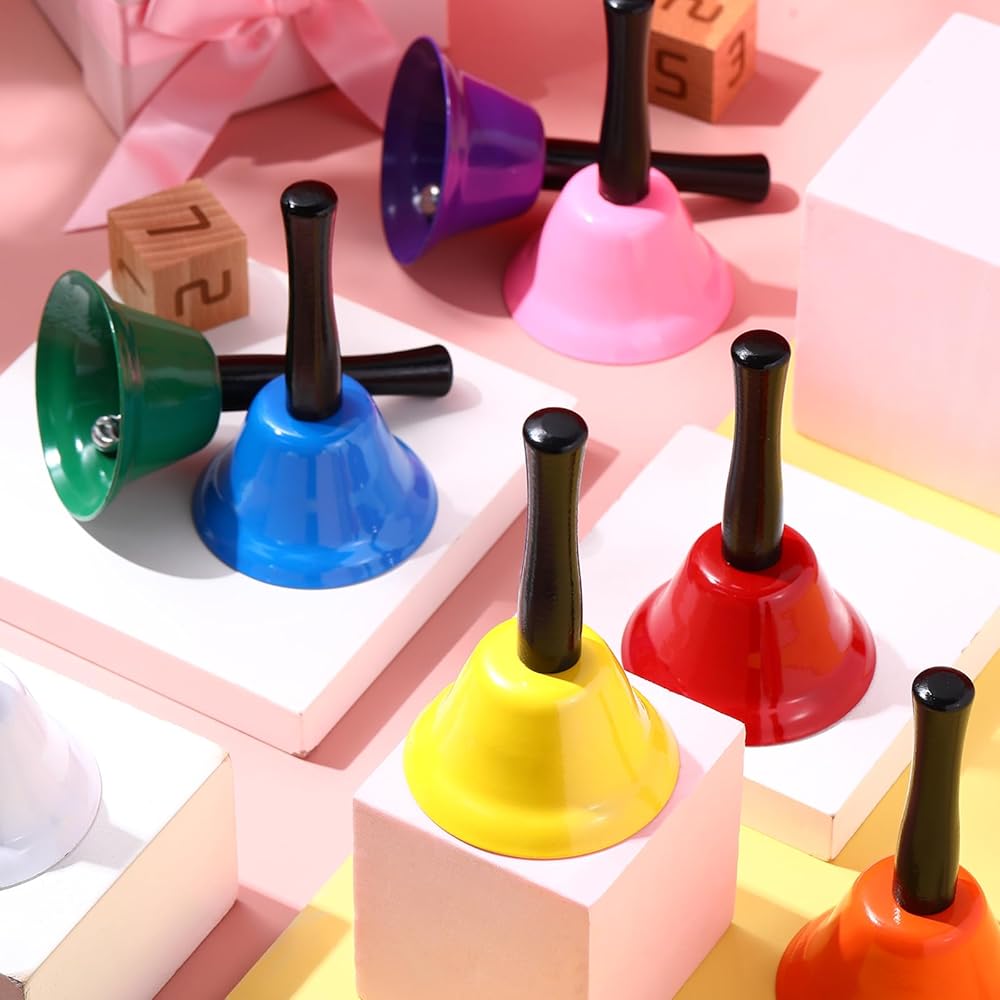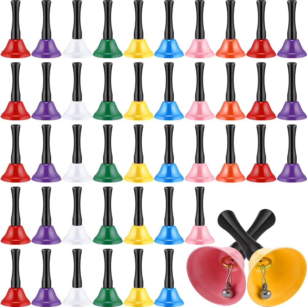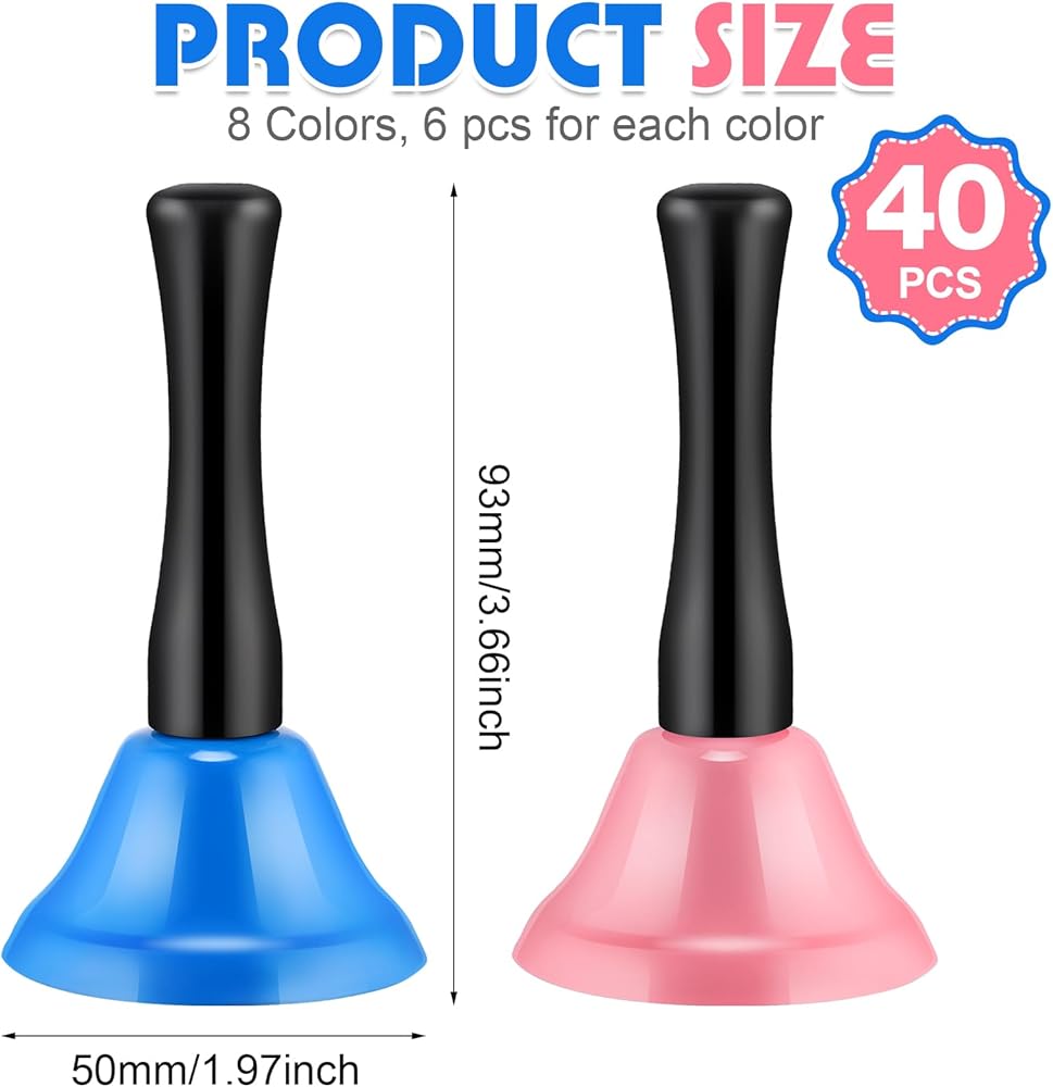 • Color Options: our 48 pieces set not only offers a practical necessity but also adds a fun touch of color to your space; The hand bells come in a variety of 8 vibrant colors, red, yellow, blue, purple, orange, white, pink, green; 6 pieces per color; Ideal for distinguishing different notifications and maintaining an attractive aesthetic