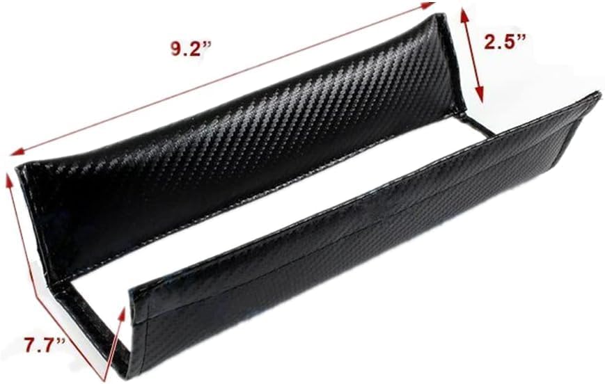 Material*Made of carbon fiber texture material and exquisite embroidery (Easy to Use)Designed with convenient opening for easily putting on and taking off 【Feature】Soft padding inside and leather to prevent your neck and shoulder from rubbing against the safety belt and keep driving more comfortable 【Size】240x60mm / 9.5x2.4in 【Package】2pcs Car Seat Belt Cover Pads
